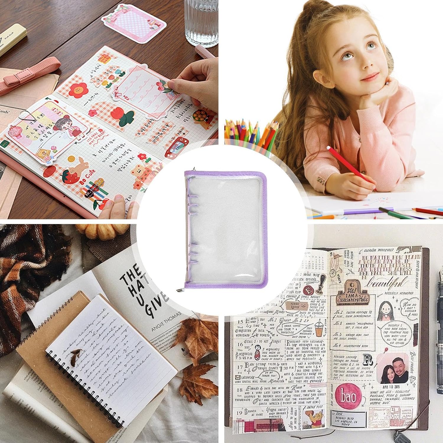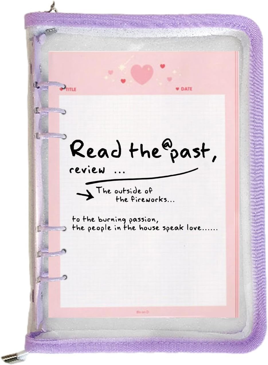 Vantaggi in termini di trasparenza: caratterizzato da materiale in PVC trasparente e design chiaro, questo raccoglitore per notebook offre una migliore visibilità, rendendolo una scelta pratica ed elegante. Ha 6 fori ed è perfetto per studenti, professionisti o chiunque voglia organizzare facilmente i propri appunti in un raccoglitore trasparente. Protezione affidabile: dì addio a polvere, acqua e danni con questo raccoglitore trasparente per notebook. Mantieni i tuoi oggetti al sicuro soddisfacendo i vari requisiti di archiviazione. Grande o , questo raccoglitore si adatta comodamente a tutto ciò di cui hai bisogno. Misura il tuo articolo per assicurarti la vestibilità perfetta e sperimentare una protezione senza pari. Design ad accesso laterale: ottieni materiali in modo rapido e semplice. Con questo raccoglitore trasparente per quaderni puoi accedere ai tuoi documenti lateralmente senza il fastidio di inserirli all'interno. La copertina trasparente protegge i tuoi documenti da acqua e polvere, mantenendoli puliti e leggibili. UNA SELEZIONE UNICA: goditi il lusso dei raccoglitori trasparenti per quaderni. Una copertura in orpello abbagliante aggiunge fascino e risalta quando la luce la colpisce. È lo strumento perfetto per organizzare i tuoi progetti ed esprimere la tua personalità con una varietà di colori eleganti. Comodo da trasportare ovunque: il raccoglitore per notebook trasparente con ampio spazio si adatta perfettamente ai tuoi file e note, perfetto per l'organizzazione in movimento. Il formato portatile si adatta facilmente alla tua borsa, così puoi scattare foto in un negozio di dolciumi o spuntino veloce in un bar. Niente più disordine. È portatile.