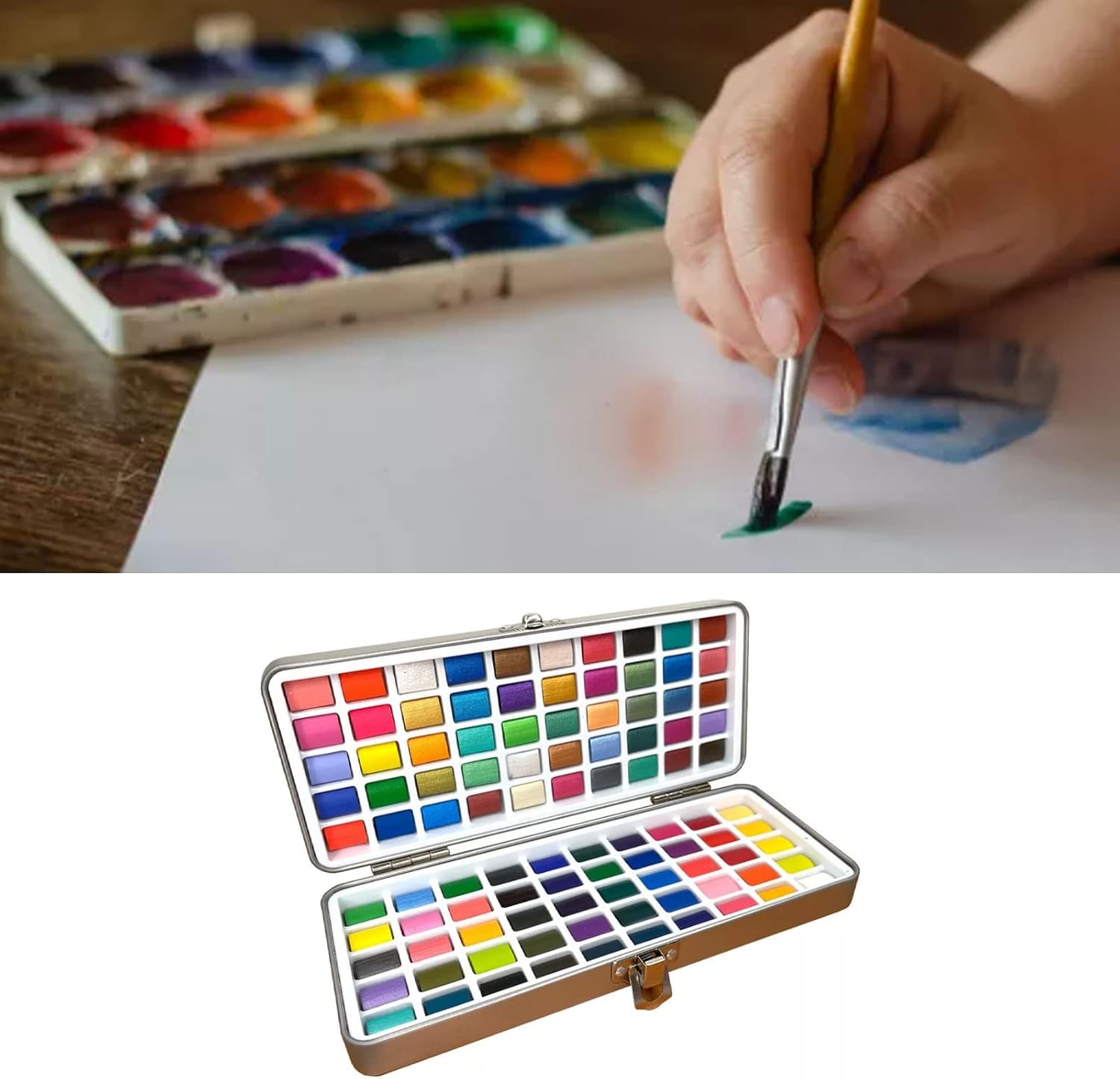 [Ideale per gli artisti] Che tu sia studente, un adulto, un artista di acquerelli professionisti o semplicemente goditi la pittura, questo set è ideale per te. [Materiale di pigmento puro] realizzato in materiali sicuri e inodore, ideali per principianti e adatti sia per bambini che per adulti. [Alta trasparenza e diffusione] Creare un effetto di pittura unico con questi acquerelli, adatti a vari stili di pittura. Ideale per artisti di tutti i livelli. [Durabilità superiore] L'alta concentrazione di macinazione fine garantisce che questi acquerelli siano di lunga durata e asciutti senza problemi senza gesso. [Design a misura di viaggio] Con una robusta scatola di ferro, questo set di acquerelli è leggero, compatto e conveniente per dipingere in viaggio o durante i viaggi.