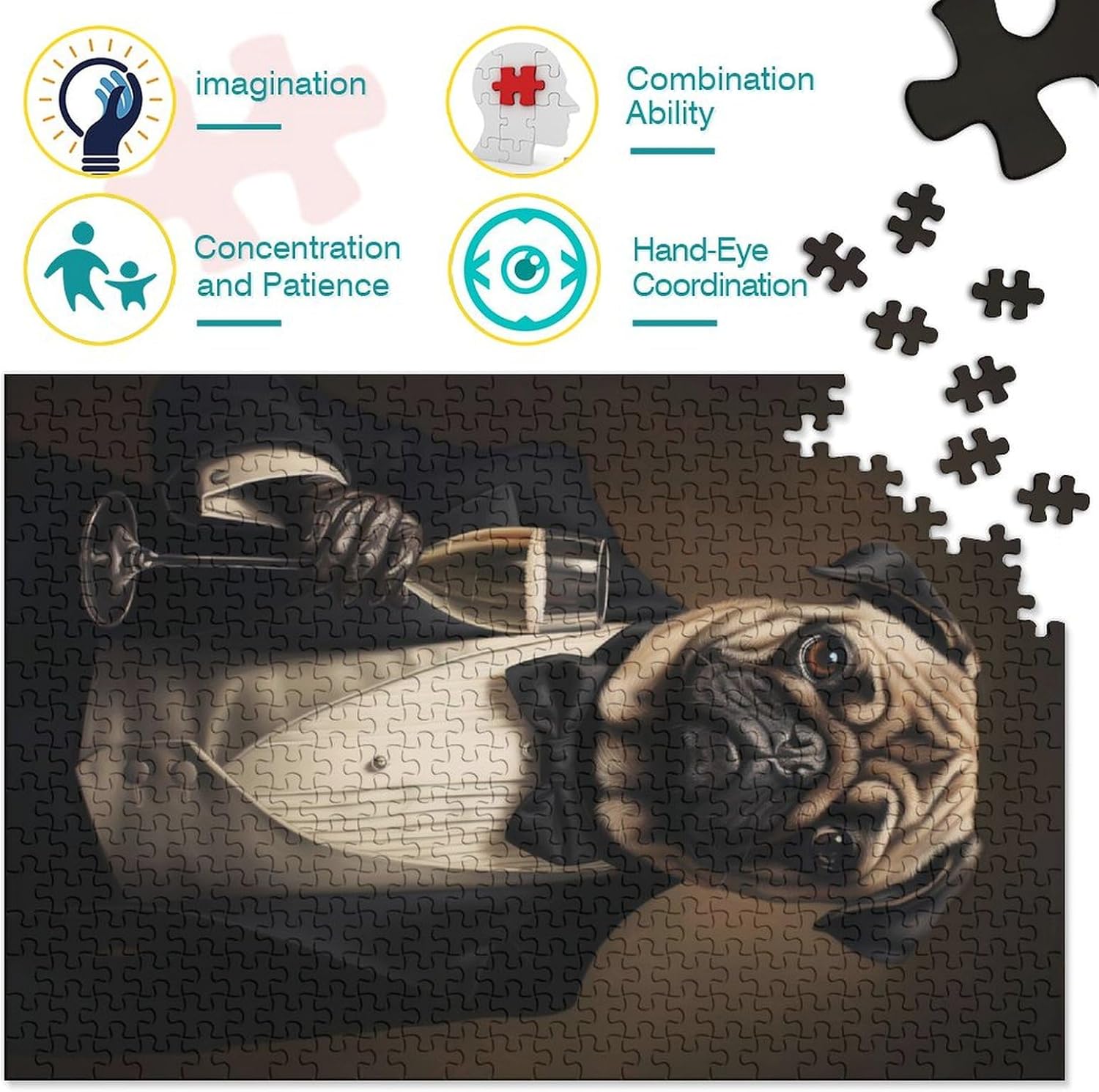 Vantaggi del gioco dei puzzle: momenti quotidiani di consapevolezza | Migliora la memoria | Allevia lo stress | Risolvi i problemi | Migliora la creatività | Abilità sociali | Migliore collaborazione | Trascorri del divertimento in famiglia insieme. Pug Dog Dressed in Smoking Puzzle è uno dei giochi per adulti giocattolo per godersi il tempo ricreativo con la famiglia e gli amici. Materiale di alta qualità: i puzzle da 1000 pezzi sono realizzati in cartone/legno di alta qualità riciclabile al 100%, robusto e resistente alla piegatura, rendono gli amanti dei puzzle un'esperienza soddisfacente. Consigliato per adulti e bambini dai 14 anni in su. Dimensioni del prodotto: puzzle di carta 1000 pezzi/26 cm x 38 cm; puzzle in legno 1000 pezzi/50 cm x 75 cm; questo puzzle con cane carlino vestito in smoking è realizzato con tecnologia di stampa avanzata di alta qualità. Ogni pezzo del puzzle è tagliato in una forma unica per fornire un ulteriore livello di autocontrollo e concentrazione, può efficacemente ispirare il pensiero delle persone, allenare il loro pensiero, giudizio e pazienza. Regalo perfetto: i puzzle per adulti di alta qualità sono una buona scelta per bambini, amanti, amici, familiari, coppie, Natale, Ringraziamento, San Valentino, Pasqua, regali di anniversario o altri giorni meravigliosi. Puoi goderti il tempo libero con la famiglia e gli amici, facendoti sentire più vicino. Soddisfazione garantita al 100%: amerai i puzzle da 1000 pezzi ben progettati, alla moda ed eleganti. Se avete domande sui puzzle o ricevuto un puzzle Missing Piece, potete contattarci in qualsiasi momento, vi daremo un buon servizio.