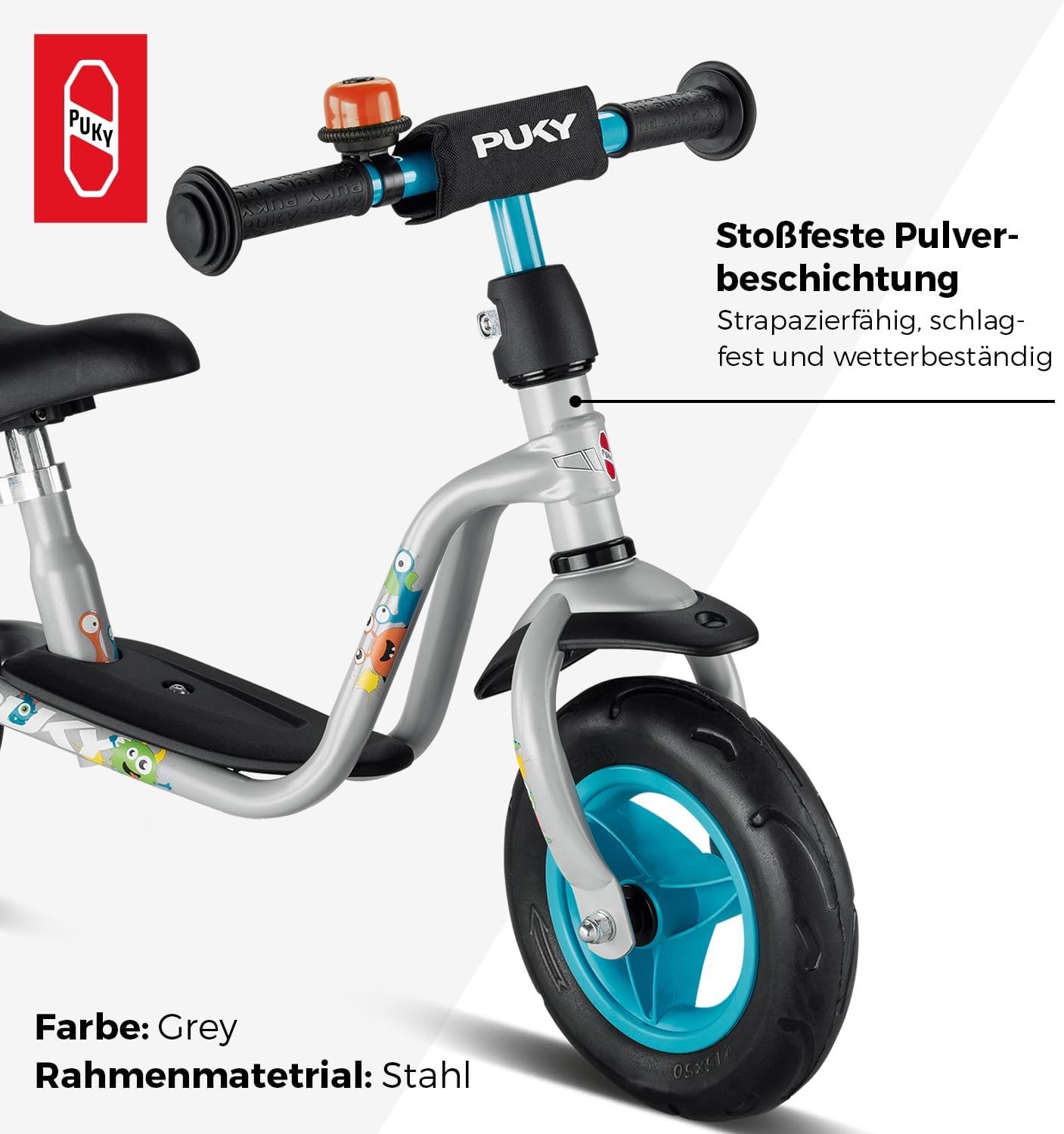 Sicurezza in anticipo: girante Puky LR M Plus di alta qualità con accesso profondo per una facile salita e discesa. Massima sicurezza grazie alle manopole di sicurezza, all'imbottitura del telaio e alle ruote con cuscinetti a sfera. Prodotto in Germania: fiducia nella qualità e nel design tedesco. Verniciatura a polvere resistente agli urti e robusto telaio in acciaio per una maggiore durata e affidabilità. Elegante e pratico: il design dei mostri dal design fresco incontra la praticità dell'attrezzatura. Con parafanghi, campana girevole adatta ai bambini e cavalletto laterale per il massimo divertimento di guida. Adattabilità flessibile: sella e manubrio regolabili in altezza garantiscono una perfetta ergonomia e una lunga durata. Ideale per bambini di 2+ anni e un'altezza di 85-110 cm. Comfort di guida: grande pedana per stabilità e comfort. Pneumatici EVA di alta qualità e carico utile massimo di 25 kg garantiscono una guida sicura e divertente.