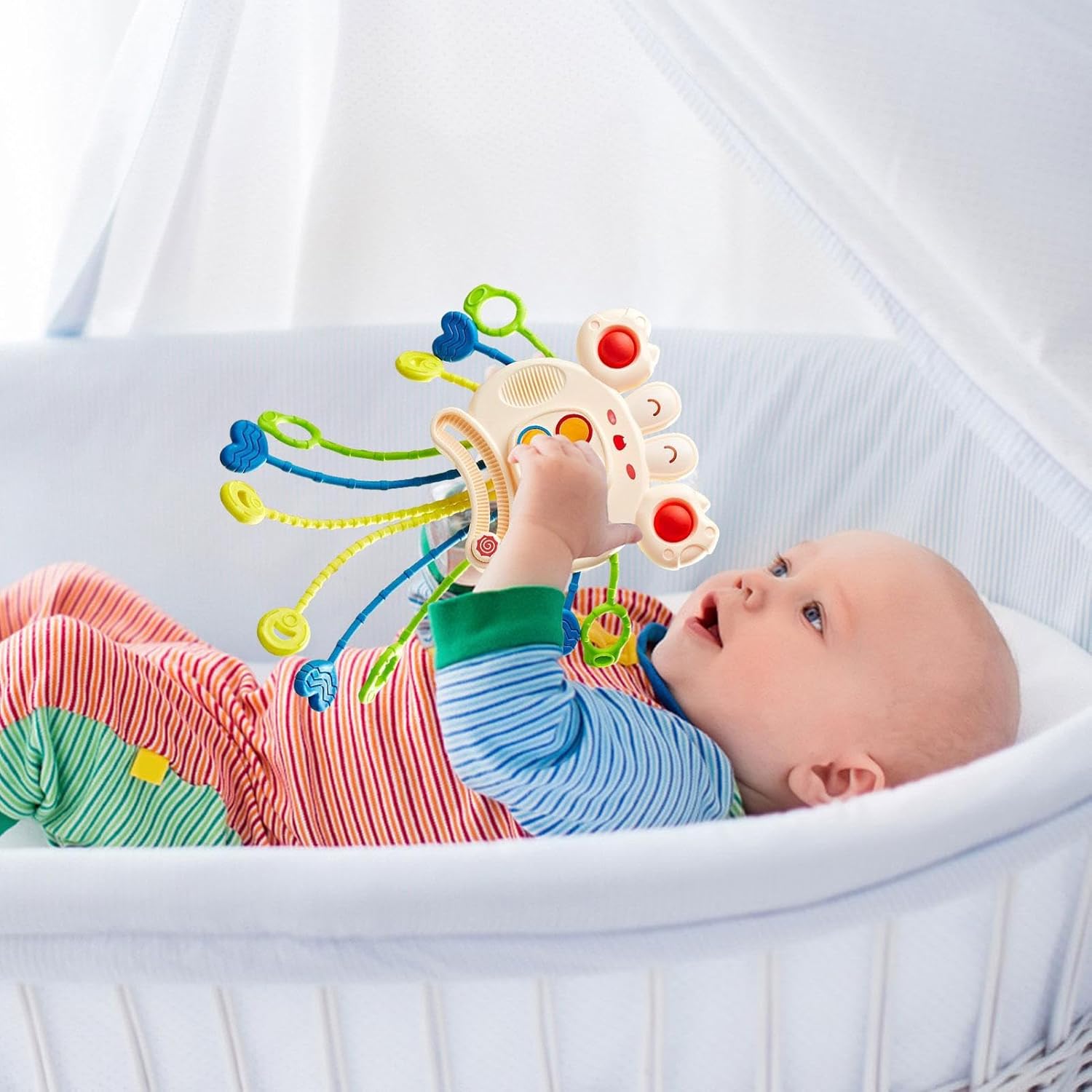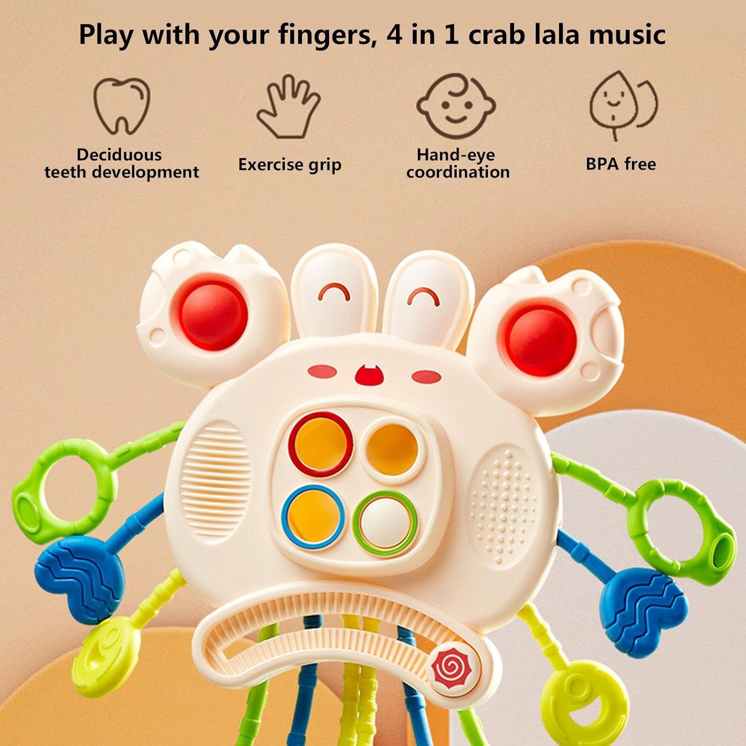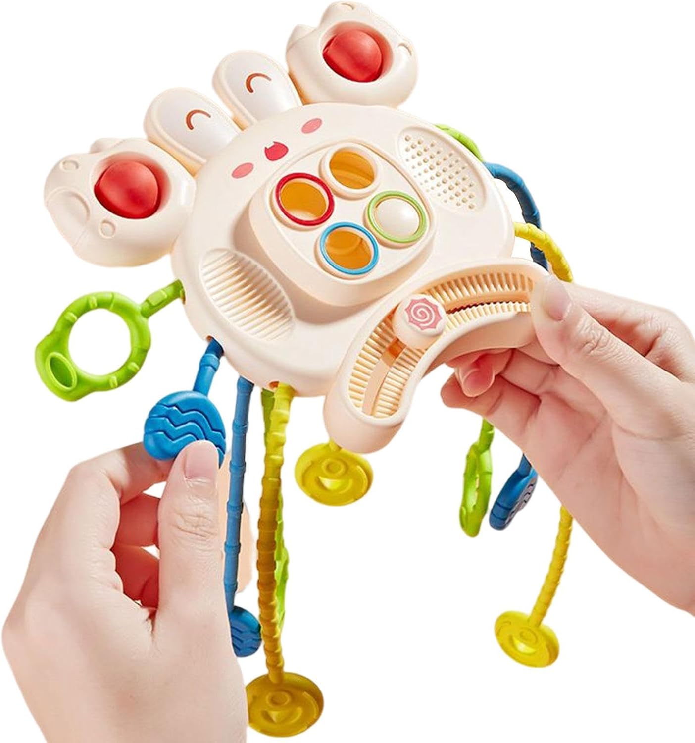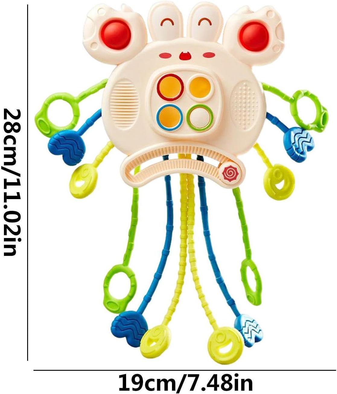 FUN MULTI-SENSORIO DI PAETRO: Il nostro giocattolo a stringa pull assume un design di granchio . Con suoni e vibrazioni stimolanti, promuove la coordinazione degli occhi e lo sviluppo della visione mentre i bambini esplorano con facilità. Design per bambini: con i materiali in silicone e ABS per alimenti, questo giocattolo di stringa Pull dà alle mamme di sapere sapere che il loro bambino sta giocando con materiali sicuri e amichevoli al 100%. Il suo design promuove lo sviluppo cognitivo e fisico. Design a misura di viaggio: realizzato per comodità, questo giocattolo a stringa Pull è portatile senza sforzo, garantendo che il di gioco non sia mai lontano, ideale per essere utilizzato in presepi, passeggini e seggiolini per auto. Migliora la felicità di tuo figlio: porta ancora più gioia ai tuoi bambini con questo giocattolo a stringa Pull, realizzato per renderli più intelligenti, più fantasiosi e creativi. Un regalo e premuroso per i bambini che porteranno infinite ore di divertimento. Promuove la flessibilità: il nostro giocattolo a stringa Pull con i giocattoli di attività di corda è progettato per esercitare la flessibilità delle dita piccole, migliorando le capacità motorie sottili. Dotato di pulsanti morbidi in posizioni rialzate, stimola la curiosità e incoraggia i bambini a toccare e premere, sostenendo la loro crescita e sviluppo.