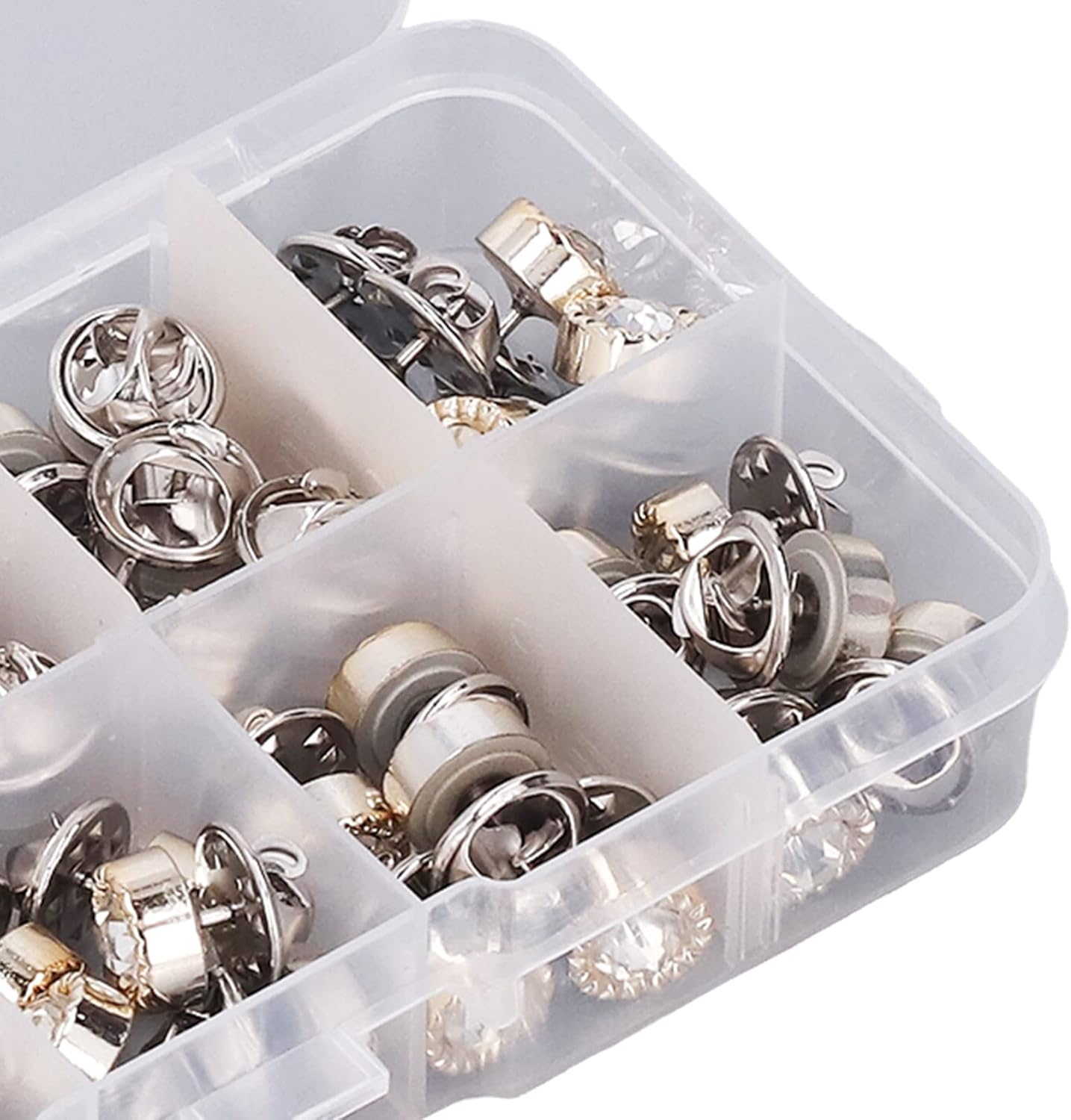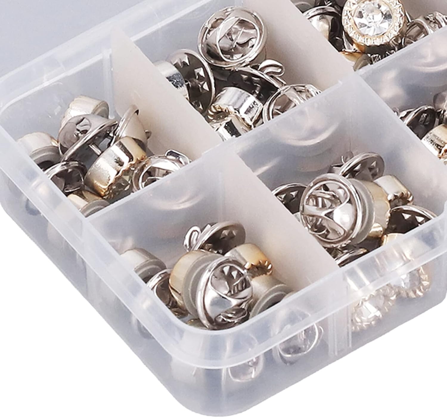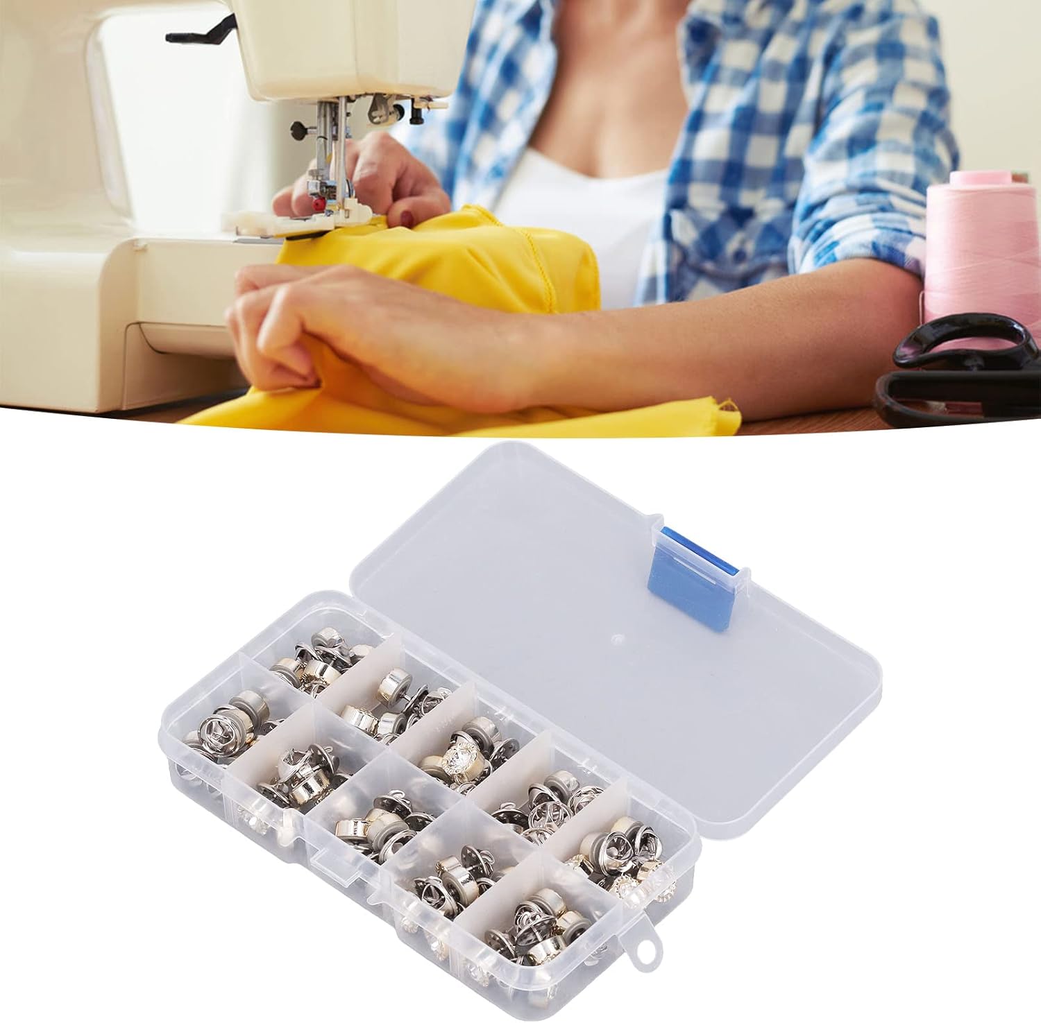 Opzione di progettazione a doppia forma: offre due forme distinte in un pacchetto per applicazioni decorative versatili; Design intelligente, comodo e pratico, bell'aspetto Materiale: combinazione di materiali di plastica e ferro resistono alla ritenzione del colore; Mantiene l'integrità strutturale attraverso ripetuti cicli di uso e lavaggio; Fornisce prestazioni affidabili in varie applicazioni di cucito e condizioni ambientali Metodo dell'applicazione: non richiede strumenti specializzati o apparecchiature di punzonatura per l'installazione; Compatibile con tecniche di cucitura a mano e cucitura a macchina; Necessità di martelli o strumenti complessi, rendendolo accessibile Utilità di riparazione completa: metodo per riparare camicie, pantaloni, abiti, gonne e maglioni; Funziona perfettamente con più tipi di tessuto tra cui materiali e indumenti più pesanti Applicazione versatile: supporta vari progetti tra cui elaborazione in pelle, accessorio e design tessile; Sia per riparazioni funzionali che per abbellimenti artistici; Tre scatole di archiviazione compartimentate incluse per la gestione dei componenti