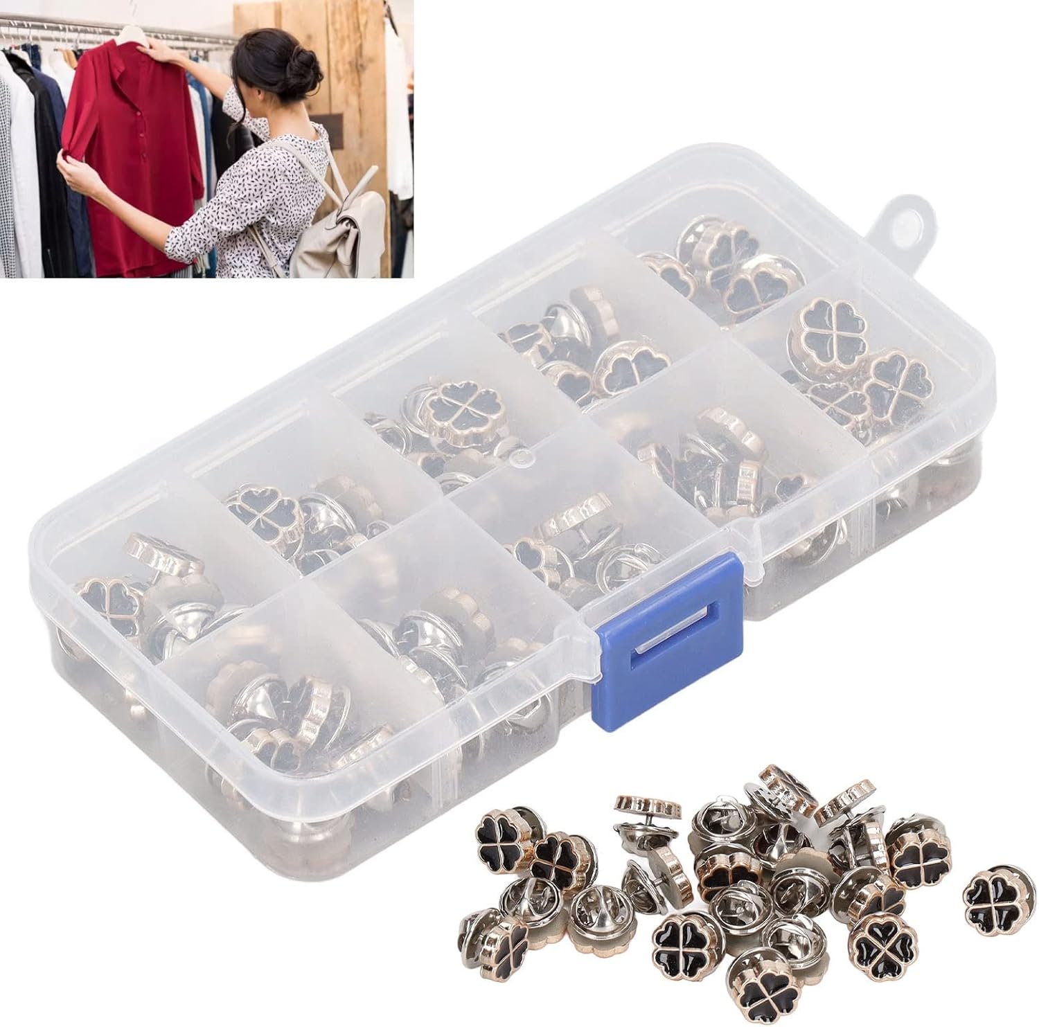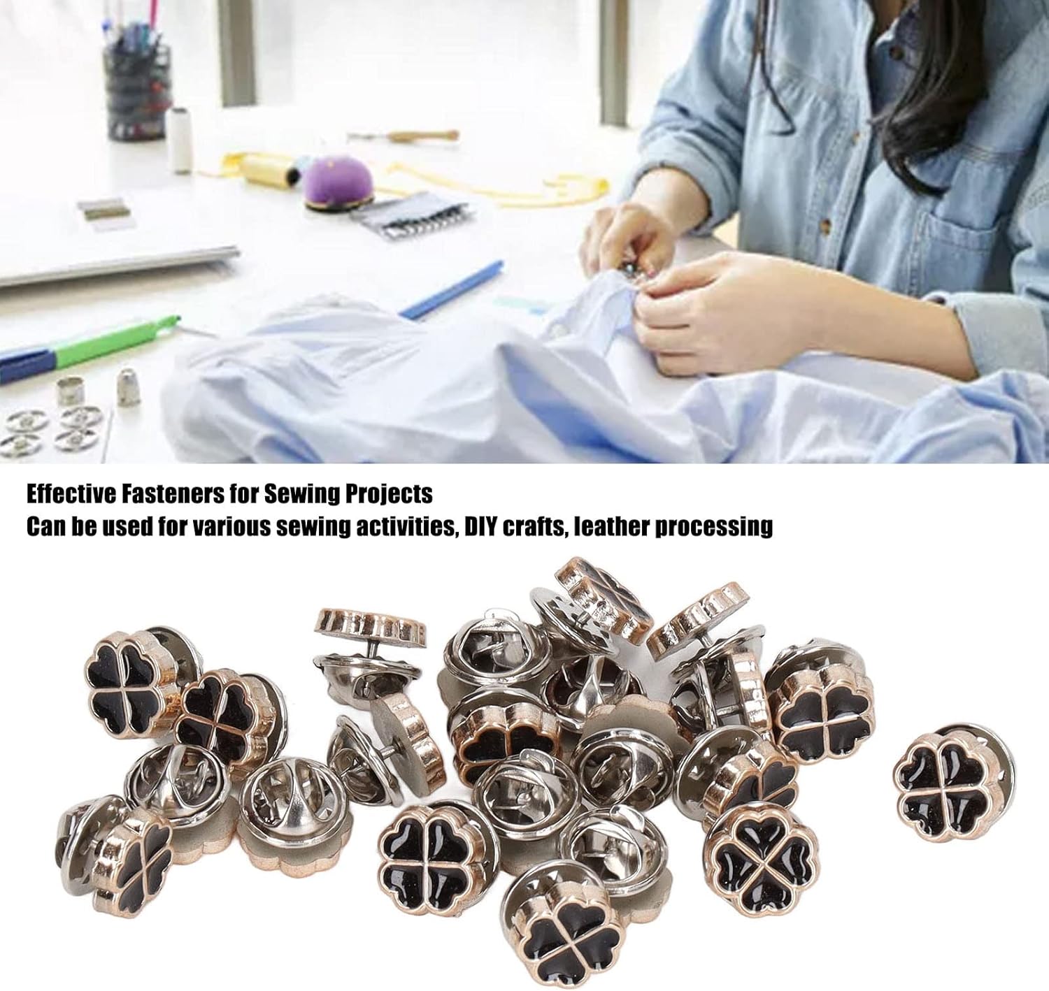 Processo di installazione semplice: semplice metodo dell'applicazione che richiede solo abilità di cucito di base; Compatibile con tecniche di cucitura a mano e cucitura a macchina; Non c'è bisogno di strumenti o attrezzature specializzate Aprici di rame: i componenti di ferro con rinforzo in rame forniscono resistenza alla resistenza strutturale; Mantiene l'integrità dell'aspetto attraverso ripetuti cicli di lavaggio; Previene lo sbiadimento del colore e le prestazioni a lungo termine in varie applicazioni di abbigliamento Applicazioni di riparazione versatili: adatti per riparare camicie, cappotti, abiti, gonne e maglioni; Funziona in modo efficace con più tipi di tessuto tra cui materiali e indumenti più pesanti; Fissaggio sicuro mantenendo funzionalità decorative Design del trifoglio decorativo: il motivo a trifoglio a quattro foglie offre un miglioramento estetico agli articoli di abbigliamento; Combina capacità di riparazione funzionale con abbellimento; Sia per l'abbigliamento quotidiano che per gli abiti speciali Versatilità artigianale: supporta vari progetti tra cui la creazione di cuoio, l'accessorio e il design tessile; Design intelligente, comodo e pratico, bell'aspetto; Anche con frequente opera, la sua integrità può essere mantenuta