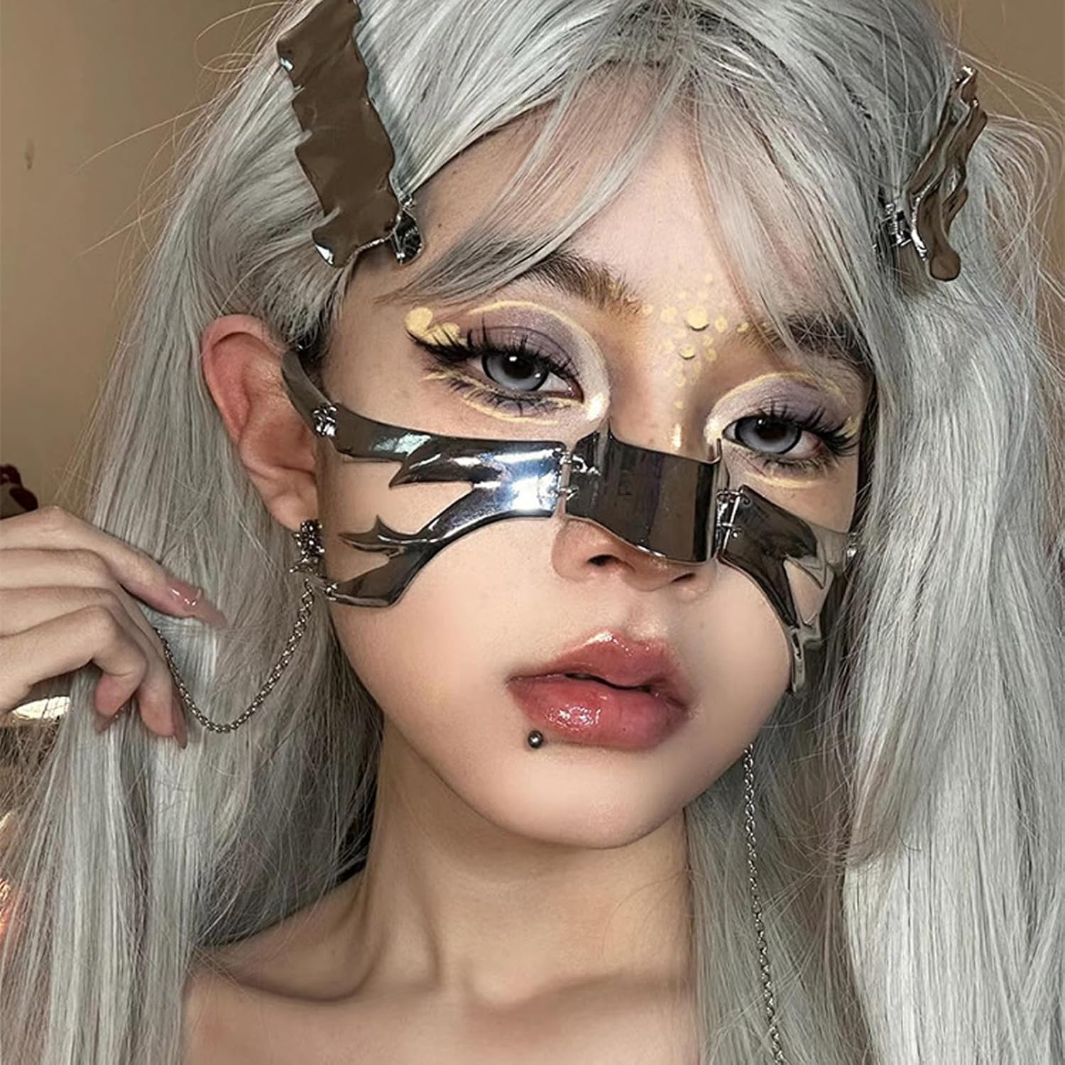 Set di 2 anelli per labbra in metallo, set di catene per il viso, per costume da donna Caratteristiche: Aumenta la tua estetica con questo set di 2 accessori per costume Metal Face, una catena per il viso regolabile, anelli per le labbra rimovibili e maschera ergonomica per il mento per puntelli fotografici e accessori per cosplay. L'artigianato in metallo combina una durata leggera con comfort delicato sulla pelle per un'usura prolungata durante l'evento o oggetti di scena creativi. Perfetto per cosplayer, appassionati di moda alternativi e creatori di contenuti che cercano accessori spigolosi per migliorare i loro costumi di Halloween o progetti fotografici. Trasforma le apparizioni della convenzione, le feste a tema o i servizi fotografici in studio in occhiali visivi con questo ornamento facciale che si adatta al punk o alle dichiarazioni di moda futuristiche. Il design multiuso funge da appariscente attrezzatura fotografica, stili di moda con supporto pratico in coraggioso accessorio facciale. Specifiche: Componente: metallo. Colore: come mostrato nell'immagine. Dimensioni: come mostrato nell'immagine. Quantità: 1 set (2 pezzi). La confezione include: 1 set (2 pezzi) di maschere punk. Nota: Si prega di considerare un margine di errore di 1-3 cm a causa della misurazione manuale. Si prega di non avere nulla prima di fare un'offerta. A causa della differenza tra i diversi monitor, l'immagine potrebbe non riflettere il colore reale dell'articolo.