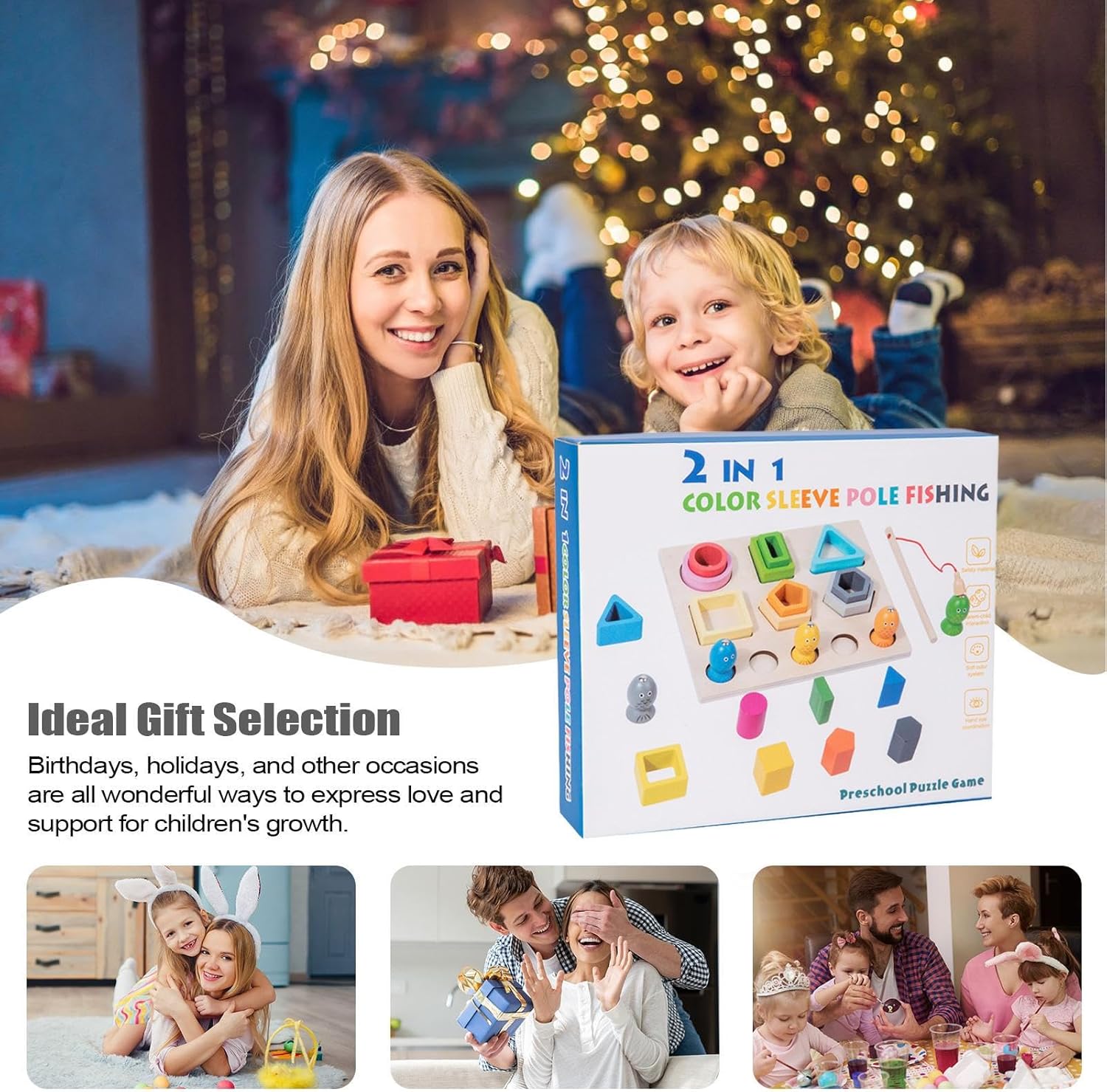Per i bambini piccoli: coinvolgere i bambini piccoli nell'ordinamento e nell'impilamento di di forme diverse per migliorare lo sviluppo cognitivo, esercitare movimenti di sottili mano e promuovere il riconoscimento degli oggetti Con canne da appositamente progettate: canne da appositamente progettate incoraggiano i bambini a esercitarsi con sottili capacità motorie, posizionando il gancio sul punto magnetico dei piccoli pesci, migliorando così la coordinazione occhio-mano e permettendo loro di godere della gioia del successo con ganci magnetici Affronta l'esplorazione creativa: attraverso molti modi interattivi, aiutare i bambini a riconoscere diverse forme geometriche, promuovere lo sviluppo a tutto tondo e migliorare le loro abilità cognitive e pratiche con colori vivaci e piccoli oggetti di varie forme Cerchi lisci: con materiali sicuri e resistenti all'usura, questo giocattolo garantisce una costruzione robusta con cerchi lisci che resistono alla deformazione, garantendo un esteso divertimento di gioco di gioco Utili multipli: ispira i bambini a esplorare e imparare attraverso il gioco interattivo; Un giocattolo versatile per ambienti sia interni che esterni, promuovendo l'apprendimento e l'intrattenimento per famiglie e istituzioni educative