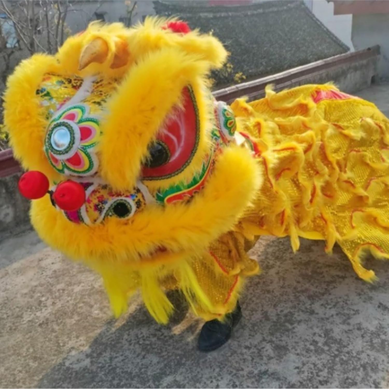 Arricchisci la tua vita: diventerà il fulcro di feste e balli all'aperto ed è un progetto di fitness adatto a tutte le età. La danza del leone utilizza l'artigianato tradizionale: la forma del leone è fatta a mano. Sicuro da indossare: scuotilo, puoi esercitarti e divertirti, arricchendo la tua vita. Tradizione classica: Può essere utilizzato come decorazione for celebrare il Capodanno lunare. Questa danza del drago cinese viene eseguita da un gruppo di artisti altamente qualificati. Versatile per molteplici occasioni: ideale per festival culturali, sfilate cittadine, eventi scolastici e spettacoli di squadra, si adatta a diversi scenari celebrativi.