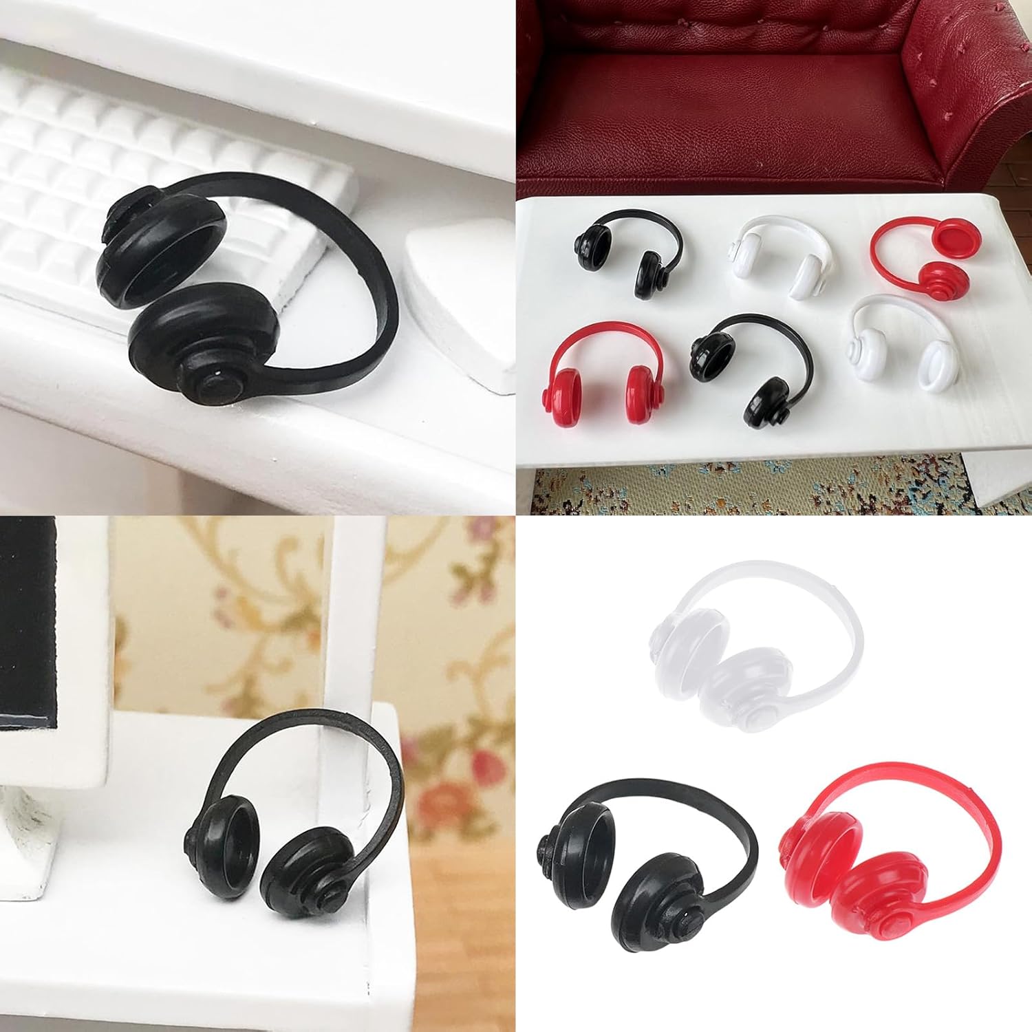 Gli accessori per case delle bambole in miniatura dall'aspetto realistico aggiungono semplicemente più fascino e divertimento alle tue case delle bambole, modello dall'aspetto eccellente molto vicino alla realtà. Ottimi oggetti di scena fotografici, un regalo molto pratico per gli amanti dei modelli che amano sé stessi e i decoratori di case delle bambole realizzano un modello decorativo, non vere cuffie. Realizza con materiali plastici per rendere queste cuffie visivamente accattivanti