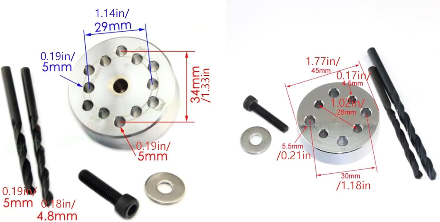 Il design compatto ma robusto è caratterizzato da componenti robusti in grado di resistere a un uso intensivo e si adatta facilmente ai kit di strumenti per le regolazioni del modello in loco. Costruito in acciaio legato resistente all'usura con un design ergonomico, questo strumento di perforazione mantiene l'affilatura attraverso l'uso ripetuto riducendo al minimo l'affaticamento della mano. Perfetto per le applicazioni in officina in cui è richiesto il posizionamento preciso dei fori sui mozzi dell'elica o su altri componenti del modello in scala durante la costruzione e la riparazione. Ideale per gli appassionati e gli hobbisti di modelli RC che cercano precisione professionale nella manutenzione degli aerei o nella costruzione di modelli Ottieni fori precisi per l'elica per motori DLE30, DLE55 ed EME55 con questo strumento ad alta precisione, garantendo un perfetto allineamento nei progetti di assemblaggio di aeromodelli