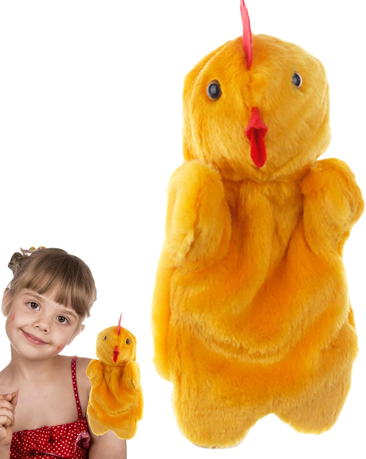 Migliora il buon movimento: promuovi la curiosità di tuo figlio con questa bambola a mano di pollo, promuovi le capacità di coordinamento e comunicazione per gli occhi per una mano per un'avventura di apprendimento divertente e creativo e stesso promuovi le sue capacità motorie e l'immaginazione. Diffuso: con questa bambola di pollo, puoi promuovere la capacità di tuo figlio di contare la storia. per giochi di ruolo, spettacoli magici e gioco fantasioso. Migliora la comunicazione genitore-figlio con questo giocattolo versatile e interattivo che offre più opzioni. Interessanti giocattoli di apprendimento: migliora le tue capacità comunicative con questa bambola a mano di pollo, perfetta per le scuole materne e le scuole materne. I bambini possono esprimersi con questo giocattolo educativo, interagire con gli altri e divertirsi. Non facile da rompere: questa bambola per mano di pollo è composta da materiale eccellente, amichevole ed è sia morbida che confortevole. Con proprietà resistenti alla luce, inodore e innocuo, è il compagno per ore di intrattenimento e gioco sicuro. Regalo unico: promuovi la creatività di tuo figlio con questa bambola a mano di pollo, che offre un'esperienza di gioco incomparabile. Un regalo per compleanni, Natale, carnevale e altri festival per promuovere giochi di narrazione e interattivi.