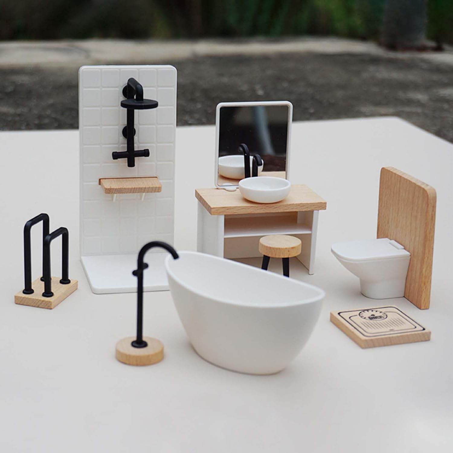 Interior design creativo: sviluppato per promuovere il pensiero spaziale, il set offre accordi flessibilicon varie combinazioni di giochi per esplorazione creativa individualmente o condivisa Design di risparmio di spazio: Grazie alle sue dimensioni in miniatura, questo set da bagno è adatto per la maggior parte delle case di s. Il design compatto facilita la rotazione e garantisce che occupi poco spazio. GRAND REGALO: Perfect Doll House Bathroom Set per la camera dei , ideale come giorno per , Natale o regalo di compleanno per ragazzi e figli, promuove il gioco creativo Garanzie di longevità:: Grazie alle superfici del bagno in legno e PP e senza cresta, il set da bagno della casa è piacevolmente realizzato a mano e per divertirsi a lungo. Captivare Play Role: permette di una replica realistica di 1:12 bagno in miniatura con elementi dettagliati un'esperienza di gioco intensiva che promuove il pensiero creativo e offre ore di lavoro fantasioso