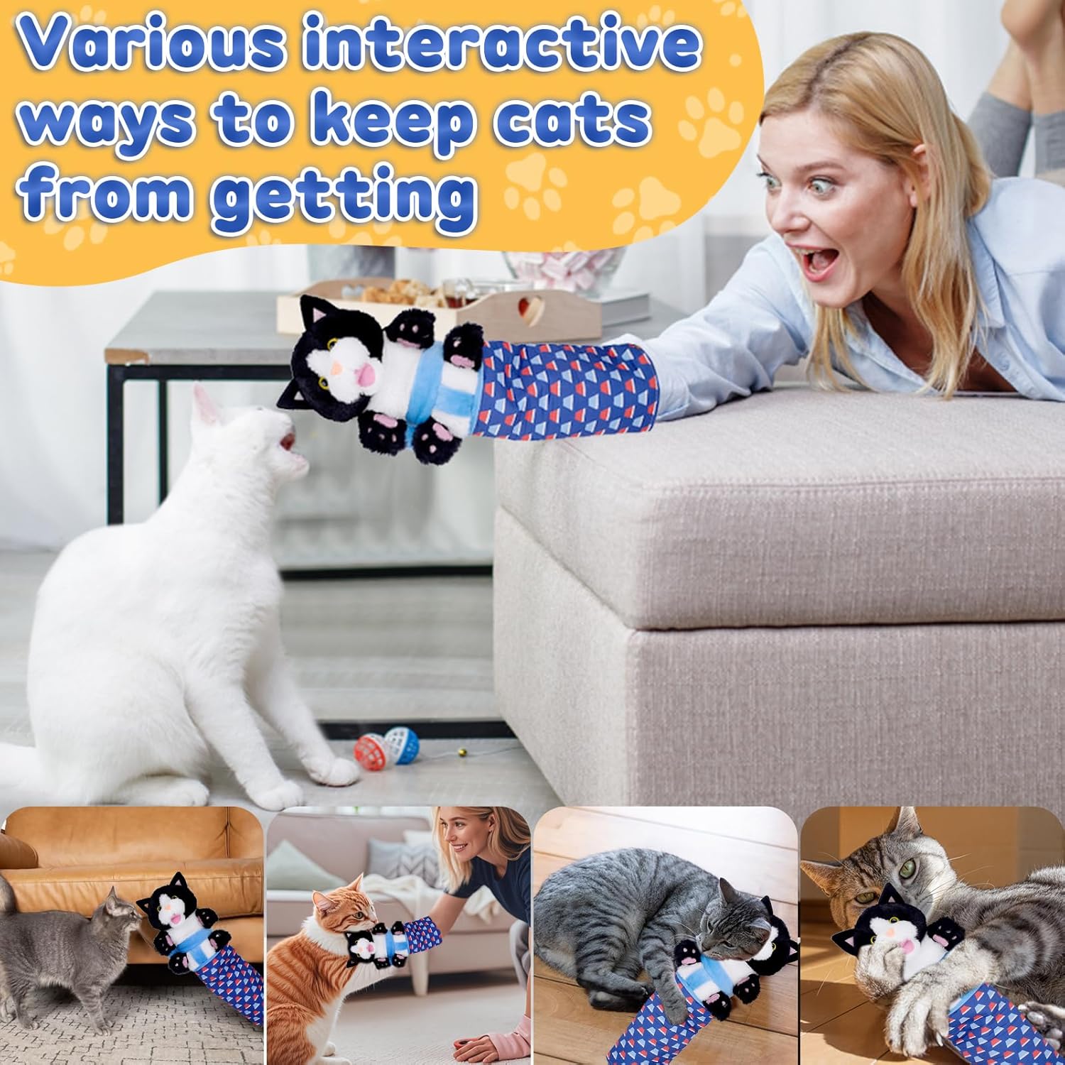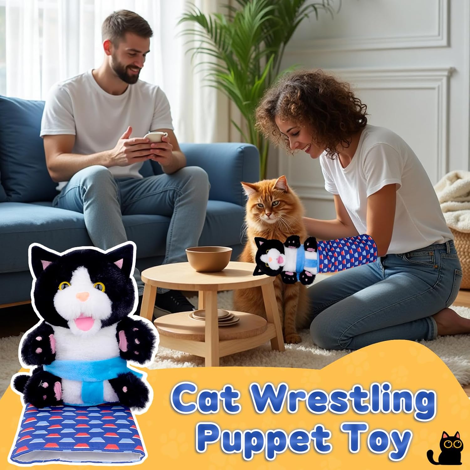【Marionetta Lottatore per Gatti Giocattolo】Giochi per gatti con pupazzo da combattimento per gatti presenta un design della mano unico che separa l'interazione umana dai comportamenti aggressivi, garantendo un gioco sicuro e controllato. Questo giocattolo per gatti tiene il tuo gatto domestico intrattenuto per ore, aiutando a ridurre la noia e l'ansia mentre stimola i loro istinti naturali di balzare e inseguire. 【Gatti Giocattolo Marionette Da Mano 】Mantieni il tuo gatto attivo e divertito con i nostri giocattoli a guanto per gatti. Se sei un appassionato di animali domestici, i nostri guanti giocattolo per gatti saranno il compagno perfetto per il gioco con il tuo amico felino. Questi giocattoli interattivi per gatti aiutano a mantenere il tuo gatto fisicamente attivo e mentalmente stimolato, rendendoli ideali per l'esercizio e l'addestramento quotidiani. 【Design Sicuro e Durevole】I nostri giochi interattivi sono realizzati in materiale morbido con protezione imbottita, garantendo durata contro morsi e salti pur rimanendo sicuri per le unghie del tuo gatto. Progettati per giochi di lotta o momenti di svago giocoso. Prioritizzando la sicurezza in ogni interazione, consentono al tuo gatto di lottare con facilità, dandoti tranquillità mentre si diverte. 【Ampia Gamma di Applicazioni】Porta questo puppet wrestler del gatto da combattimento per gatti in qualsiasi avventura, sia al parco, in giardino, in spiaggia o al chiuso. Perfetto per giochi di lotta o come divertente giocattolo di peluche durante i momenti di svago. Questi giocattoli interattivi sono un modo fantastico per canalizzare gli istinti giocosi del tuo gatto e tenerlo attivo. 【Regalo Perfetto per le Feste】Marionette per bambini gatti è una scelta perfetta per occasioni come Pasqua, Ringraziamento, Natale e Capodanno.