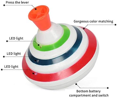 Può brillare e brillare al buio. Mentre gira, emette una luce brillante, scintillante e colorata, accompagnata da una musica meravigliosa che è molto attraente per gli occhi. Il giroscopio lampeggiante è realizzato in plastica ABS ecologica, non è tossico, sicuro e affidabile. Questo classico giroscopio promuoverà la creatività fisica / cinestetica e le abilità motorie di tuo figlio. È compatto e leggero, facile da trasportare, ti consente di suonarlo quasi ovunque. Design divertente e unico per sorprendere i tuoi bambini o regalare ai loro amici le bomboniere più uniche. Un regalo ideale per i bambini.