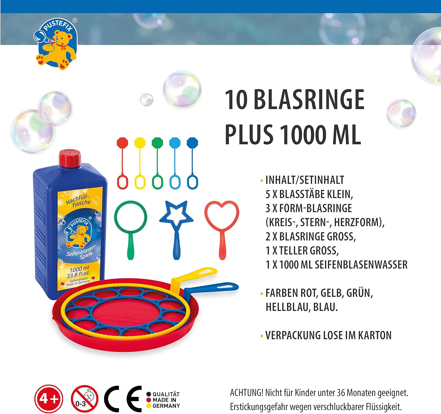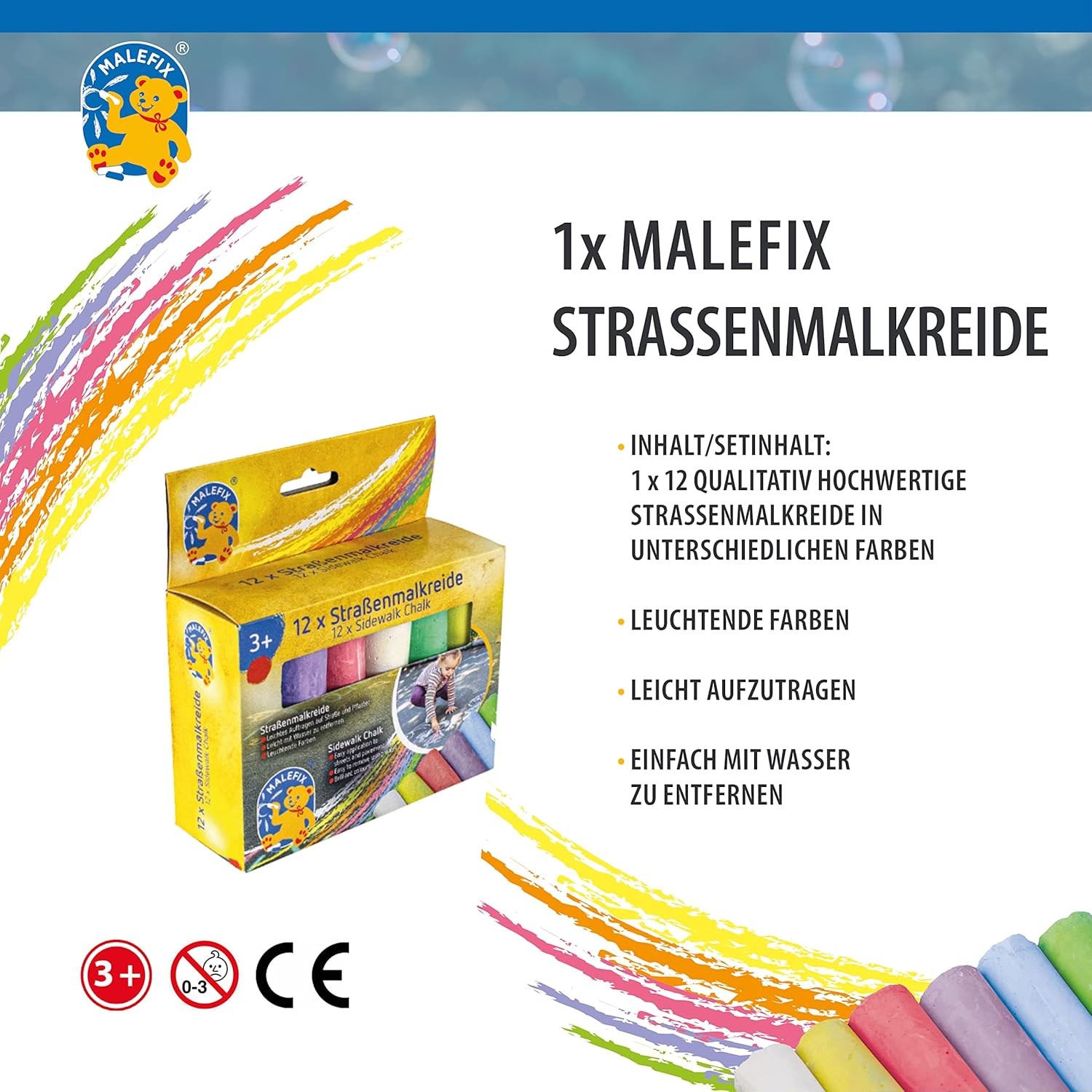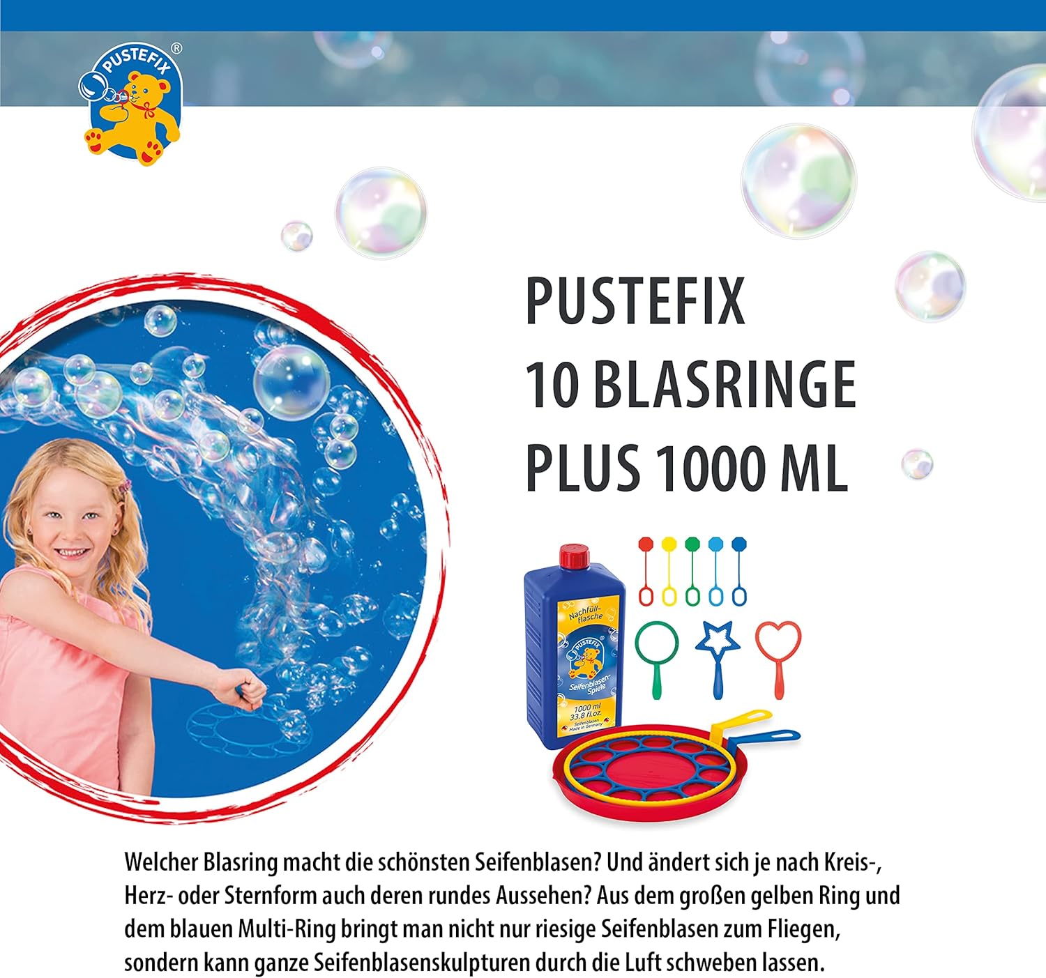COLORI LUMINOSI E SET DI ANELLI: il gesso offre una vasta selezione di colori con sfumature luminose e intense che accendono la creatività dei bambini. È incluso anche 1 litro di acqua per bolle di sapone con anelli di varie forme. FACILE DA APPLICARE E RIMUOVERE: il gesso consente di dipingere senza sforzo ed è facile da lavare con acqua. Non lascia tracce durature, è ecologico e non tossico DURATA UNICA: Grazie alla speciale ricetta del sapone liquido PUSTEFIX, fai più bolle, sono più colorate, durano più a lungo, volano più lontano e scoppiano più tardi DIVERTIMENTO VERSATILE: Superfici iridescenti, forme estetiche e colori interessanti delle bolle di sapone e del pastello affascinano non solo le ragazze e i ragazzi più piccoli, ma anche gli adulti PUSTEFIX: Come specialisti delle bolle, siamo sinonimo di esperienza, qualità, ricette rispettose dell'ambiente e sicurezza affidabile dei nostri giochi di bolle da oltre 70 anni