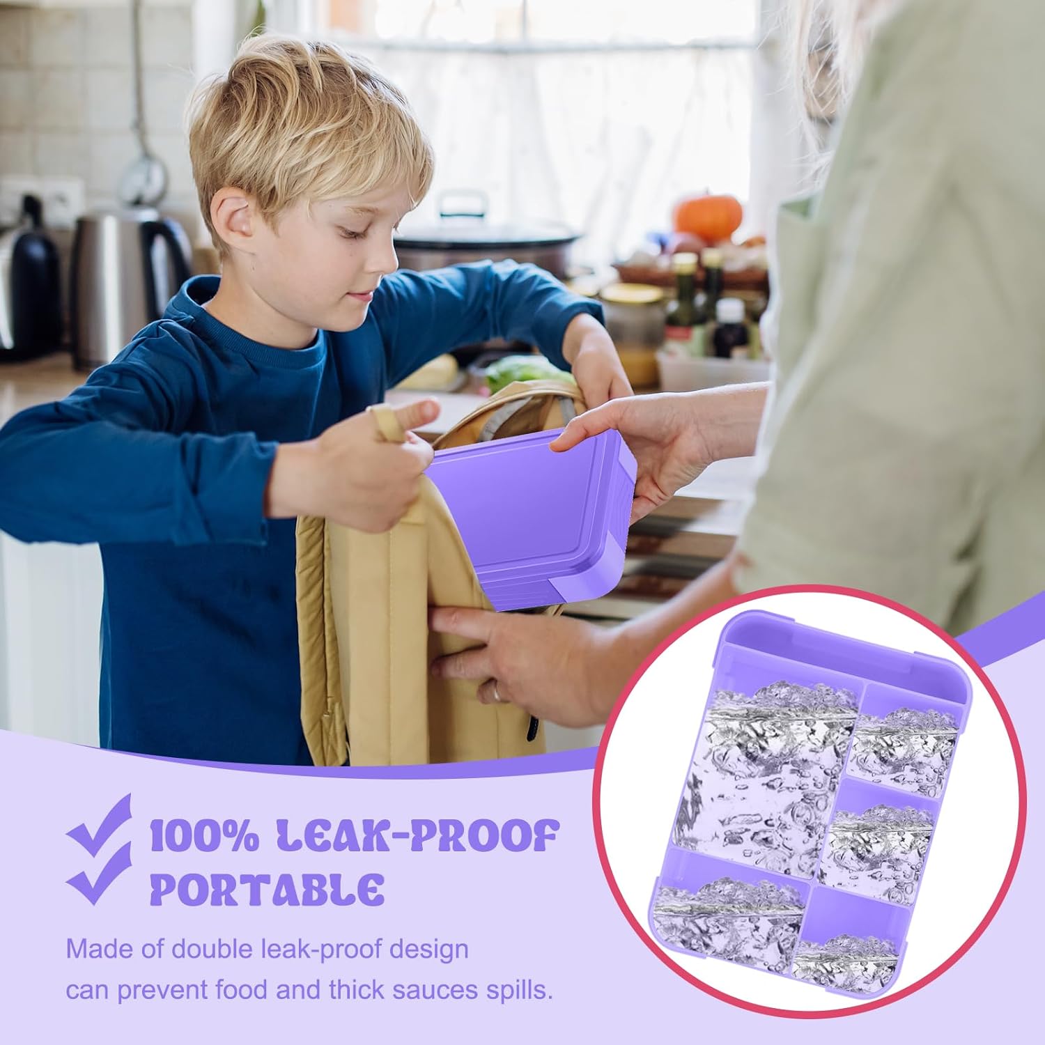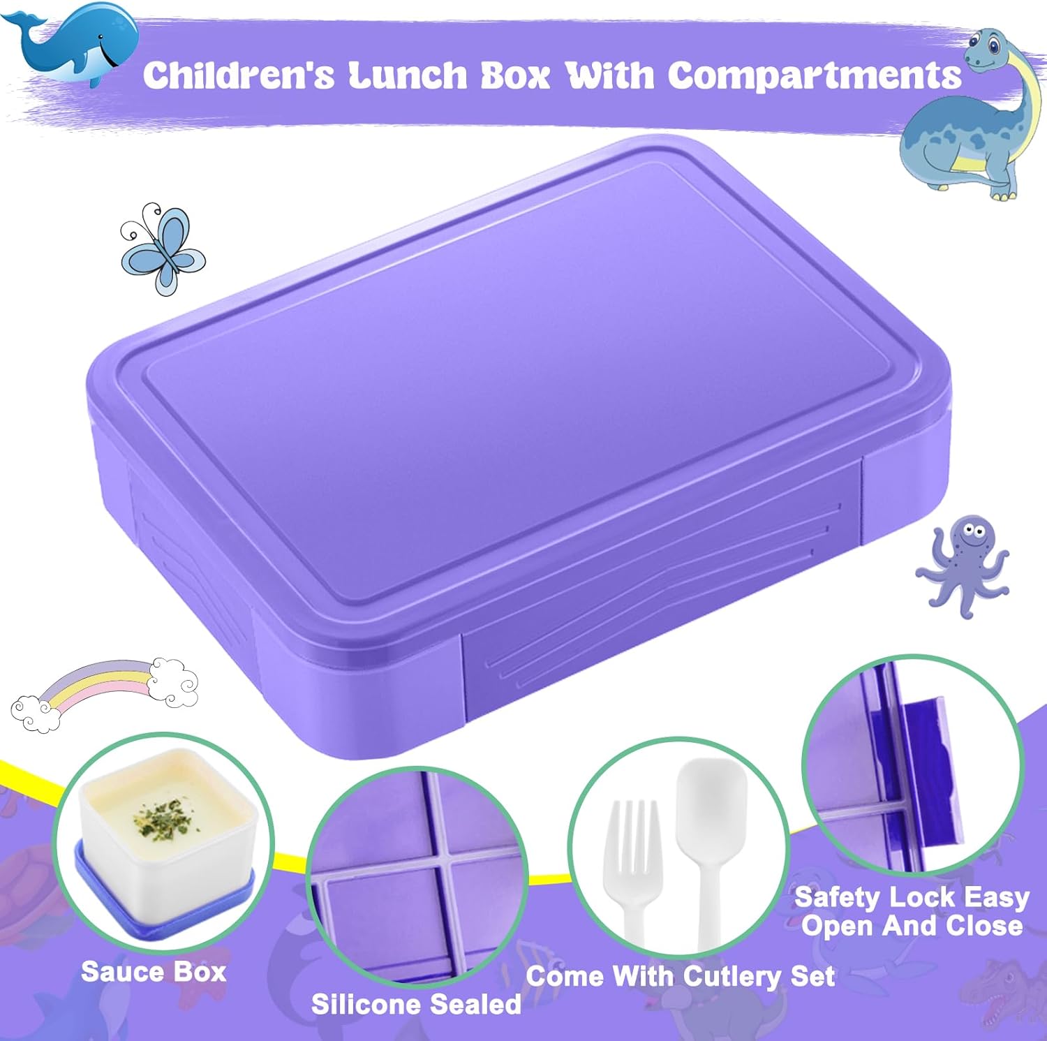 【MATERIALE SICURO PER GLI ALIMENTI】Porta Pranzo con Posate con scomparto è realizzata in materiale PP di alta qualità, resistente, senza BPA, non tossico e inodore. Adatto a bambini e adulti per un uso sano 【A PROVA DI FUGA E DUREVOLE】 Utilizzando il silicone a prova di perdite, può mantenere i pasti e gli spuntini freschi e puliti durante il trasporto. Schiscetta pranzo scomparti è progettata con 4 chiusure adatte ai bambini per facilitare l'apertura e la chiusura da parte delle piccole mani 【LUNCH BOX CON SCOMPARTI】La scatola per il pranzo a prova di perdite per bambini ha una grande capacità (1330 ml), la scatola per il pranzo con scomparti ha 5 scomparti per piatti principali, frutta, snack, insalate, panini e salse. Gli accessori includono 1x bento box, 1x forchetta, 1x cucchiaio; 1x contenitore per salse 【SICURO PER MICROONDE E LAVASTOVIGLIE】Porta pranzo bambini con scomparti è adatto per l'uso nell'intervallo di temperatura da -20 °C a 110 °C. Adatto al microonde, al frigorifero e alla lavastoviglie (rimuovere il coperchio prima del microonde). Adatto al microonde a 248 °C per 2-4 minuti 【AMICO DELL'ESTERNO E DEI BAMBINI】Lunch box bambini con scomparti è compatta e facile da trasportare. Ideale per bambini e bambine. È anche adatto per essere utilizzato come cestino per il pranzo in scuole, uffici, luoghi di lavoro, picnic, viaggi e altrove. Un regalo perfetto per i vostri amici e familiari
