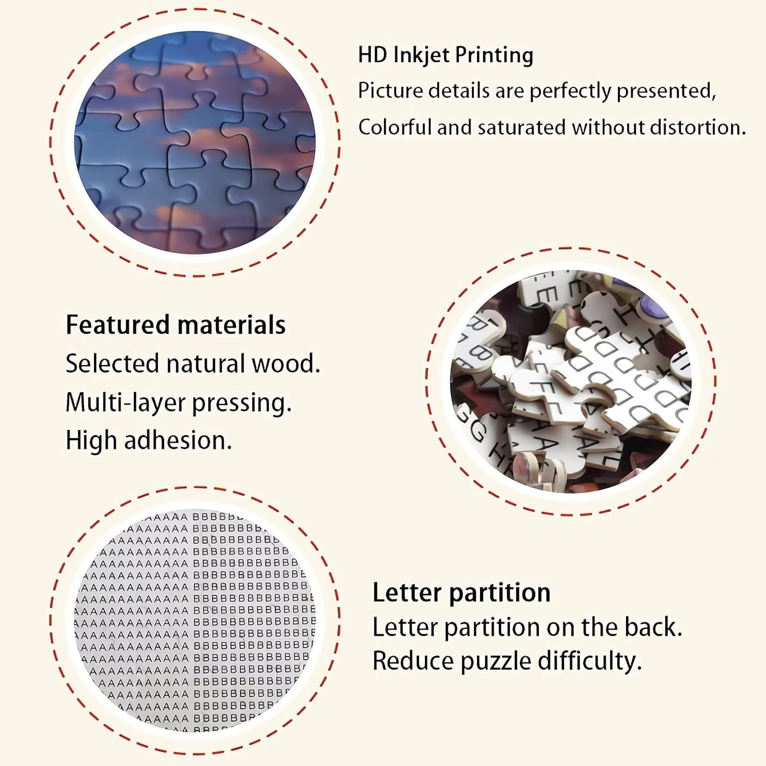 PUZZLE 1000 PEZZI : puzzle 1000 pezzi, dimensioni 29.53x19.69 in/75x50cm Il puzzle viene fornito con una raffinata scatola e un poster. Fare riferimento al poster per completare il puzzle. PUZZLE IN LEGNO PER ADULTI: puzzle in legno selezionato da tiglio che cresce in regioni d'alta quota da oltre 10 anni. I pezzi del puzzle sono spessi e robusti, il legno è compatto, resistente e non si rompe facilmente. Il nostro puzzle vanta un'eccezionale nitidezza e durata. Grazie all'avanzata tecnologia di taglio laser, ogni pezzo è realizzato con precisione e bordi lisci, garantendo un'esperienza sicura e divertente per tutte le età. DESIGN FACILE DA USARE: Con lettere alfabetiche stampate sul retro, i nostri puzzle sono divisi in sezioni per un assemblaggio più semplice, rendendo il processo più accessibile e riducendo la complessità per tutte le età. PUZZLE DIFFICILI PER ADULTI: Momenti di consapevolezza quotidiana | Migliora la memoria | Antistress | Risoluzione dei problemi | Aumenta la creatività | Competenze sociali | Migliore collaborazione | Momenti divertenti in famiglia. Scene adatte: sorprese per anniversari, regali di compleanno, celebrazioni di team, creazione di un brand, interazione genitori-figli... Lascia che il tempo frammentato crei una storia unica. PERSONALIZZABILE: Un'esperienza di puzzle unica e su misura per te! Che si tratti di una foto di famiglia preziosa, di un animale domestico amato, di un romantico scenario di viaggio o di un'opera creativa dipinta a mano, tutto può essere trasformato in un puzzle squisito! Esclusivi e personalizzati, non solo puzzle, ma anche raccolta e trasmissione di emozioni. Carica subito le tue foto, contatta il servizio clienti e inizia il tuo viaggio creativo.