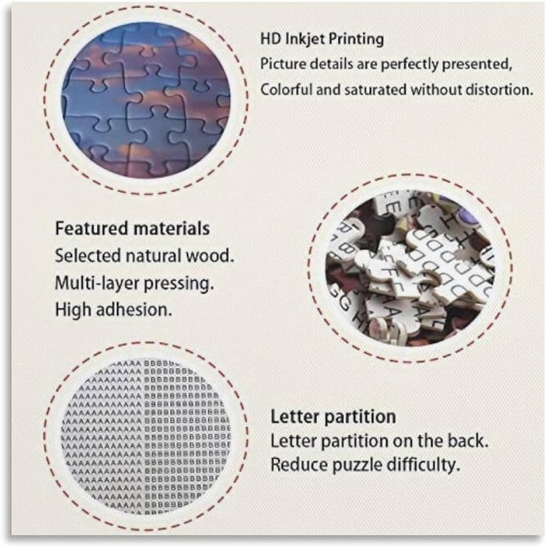 1. Vantaggio del prodotto: sfida puzzle da 1000 pezzi per adulti e bambini dagli 8 anni in su; puzzle classici in ottica 3D, perfetta attività ricreativa per la famiglia e gli amici. 2.Realizzato in cartone riciclabile di alta qualità (38x26 cm) per una maneggevolezza durevole e facile durante l'assemblaggio del puzzle. 3. Occasioni versatili: scelta regalo perfetta per Pasqua, Natale, compleanno, Ringraziamento, Festa dei bambini, Capodanno, Festa del papà, compagni di classe, amici e famiglia. 4. Uso creativo e decorativo: i puzzle finiti possono essere appesi a casa come dipinti decorativi e arricchire l'interno. 5. Giocattolo ideale per uomini e donne di tutte le età: il puzzle promuove l'attività cerebrale e migliora la concentrazione pur essendo divertente e sfidando le abilità dei giocatori.