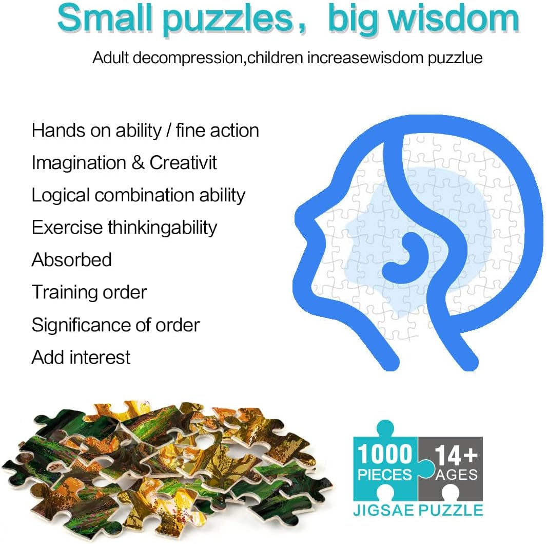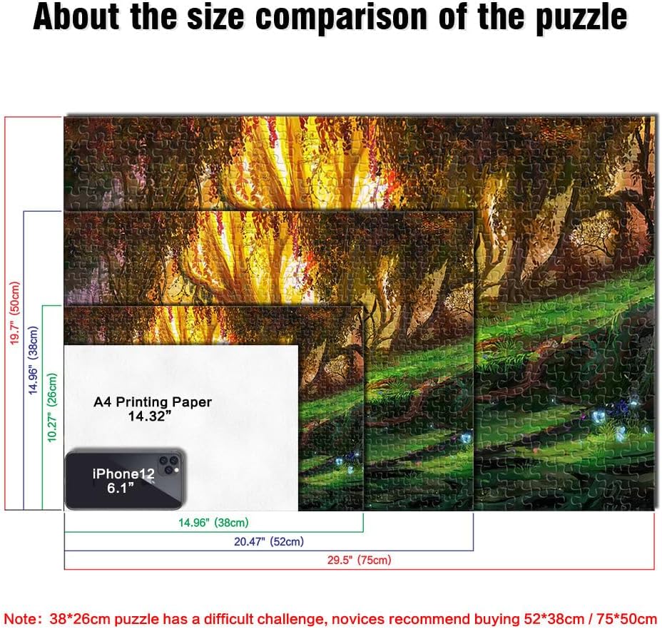 Puzzle 1000 pezzi per adolescenti Foresta incantata Il puzzle è confezionato in un sacchetto con coulisse e viene fornito con una bella scatola regalo e un poster regalo a grandezza naturale. Dimensioni finali 38x52cm 【Materiale di alta qualità】Realizzato in legno riciclabile di alta qualità, atossico, inodore e privo di polvere. La tecnologia di taglio di precisione garantisce che ogni pezzo del puzzle si adatti perfettamente, offrendoti la migliore esperienza. 【Design unico】: Utilizziamo una tecnologia di taglio di precisione per garantire che ogni pezzo del puzzle si adatti perfettamente senza polvere. Ogni pezzo del puzzle è stampato con inchiostro antiriflesso e atossico. La guida per le lettere sul retro del puzzle fornisce un ulteriore aiuto e rende il puzzle più facile da risolvere. 【Rilassamento e sollievo dallo stress】: I puzzle artistici sono un modo prezioso per godersi del tempo di qualità a casa. Assemblare un puzzle da 1000 pezzi può migliorare l'umore, potenziare le capacità cognitive e migliorare la memoria a breve termine. 【Supporto】 Se riscontri che al tuo puzzle manca un pezzo, non esitare a contattarci e lo sostituiremo con un puzzle con la stessa immagine senza domande o condizioni.