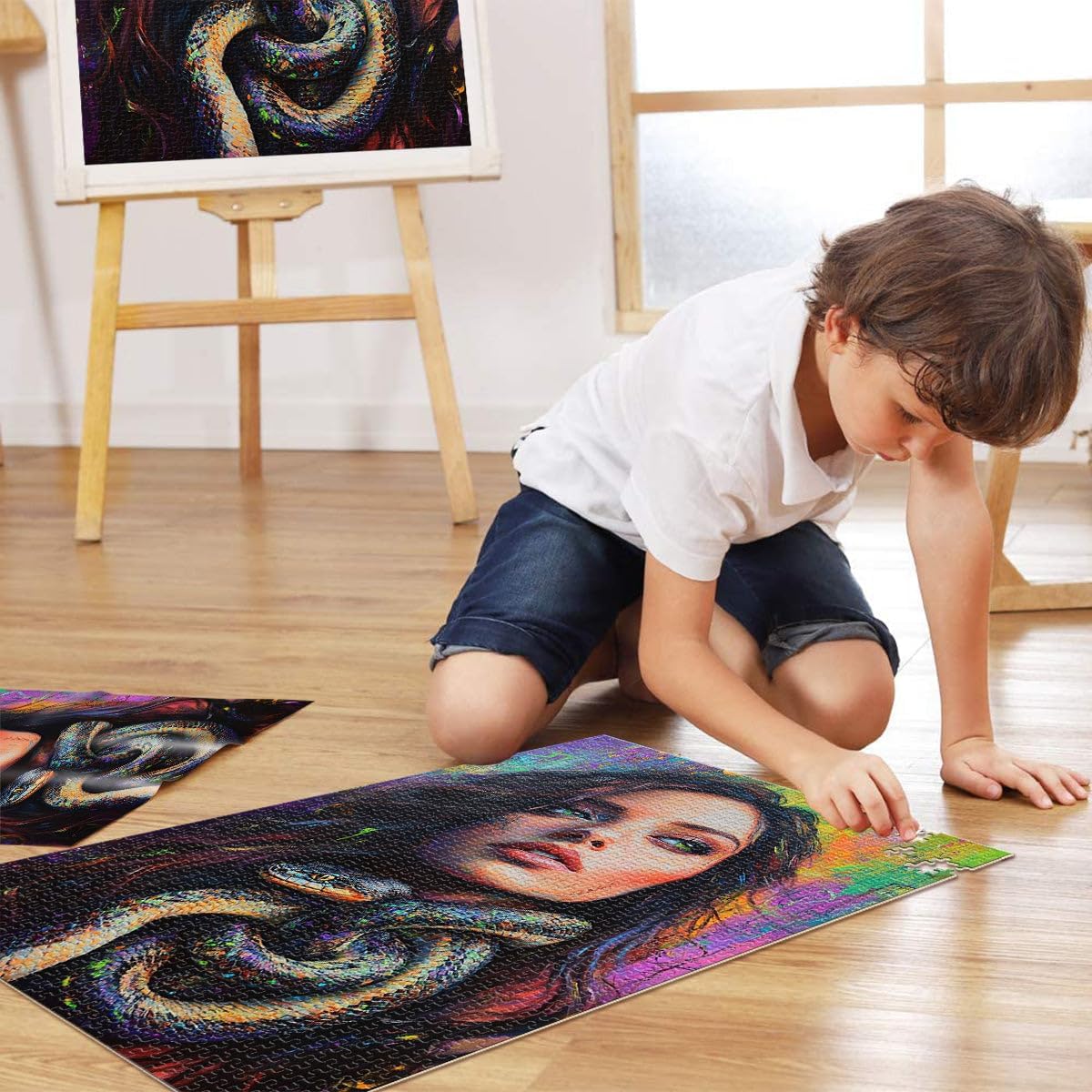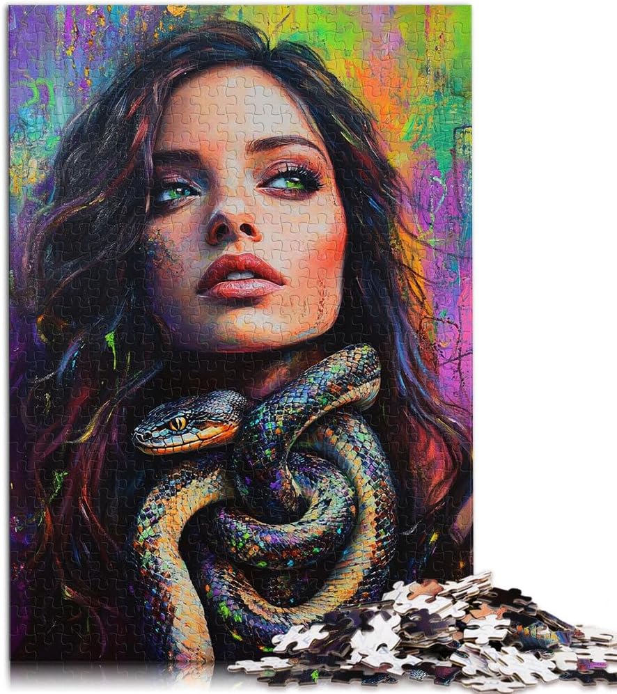 Puzzle 1000 pezzi per adulti Donna e serpente Fatto di legno per età 14+ Giocattoli per la decorazione della casa Regalo divertente misurare:50x75cm