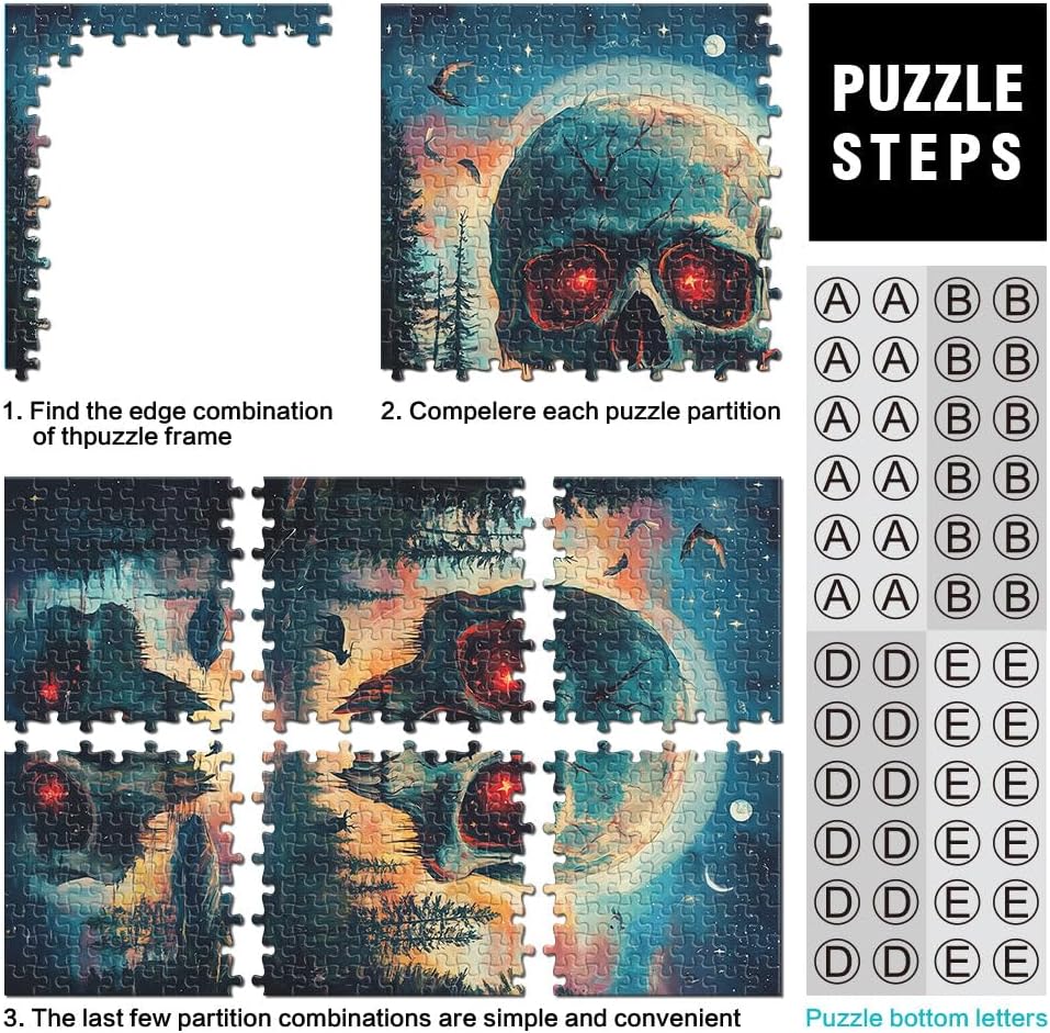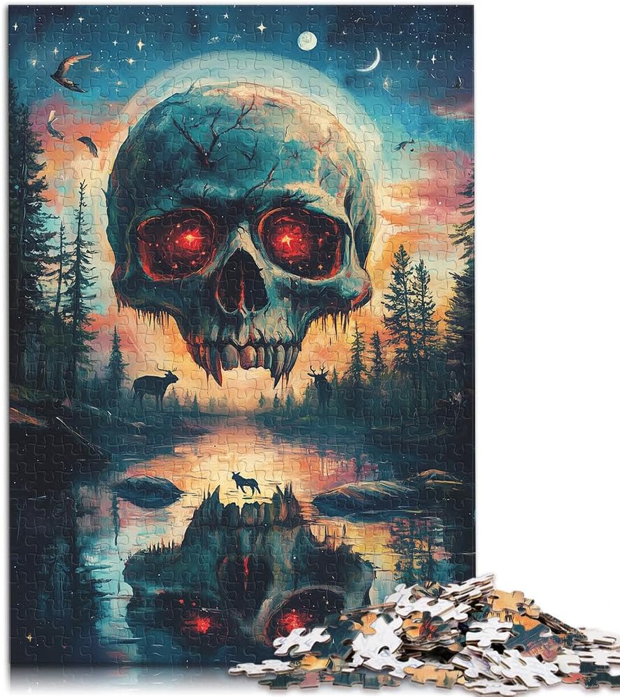 Puzzle 1000 pezzi per adulti Teschio con occhi luminosi Fatto di legno per età 14+ Ogni pezzo è unico - Gioco divertente e stimolante per tutta la famiglia Idee regalo misurare:50x75cm