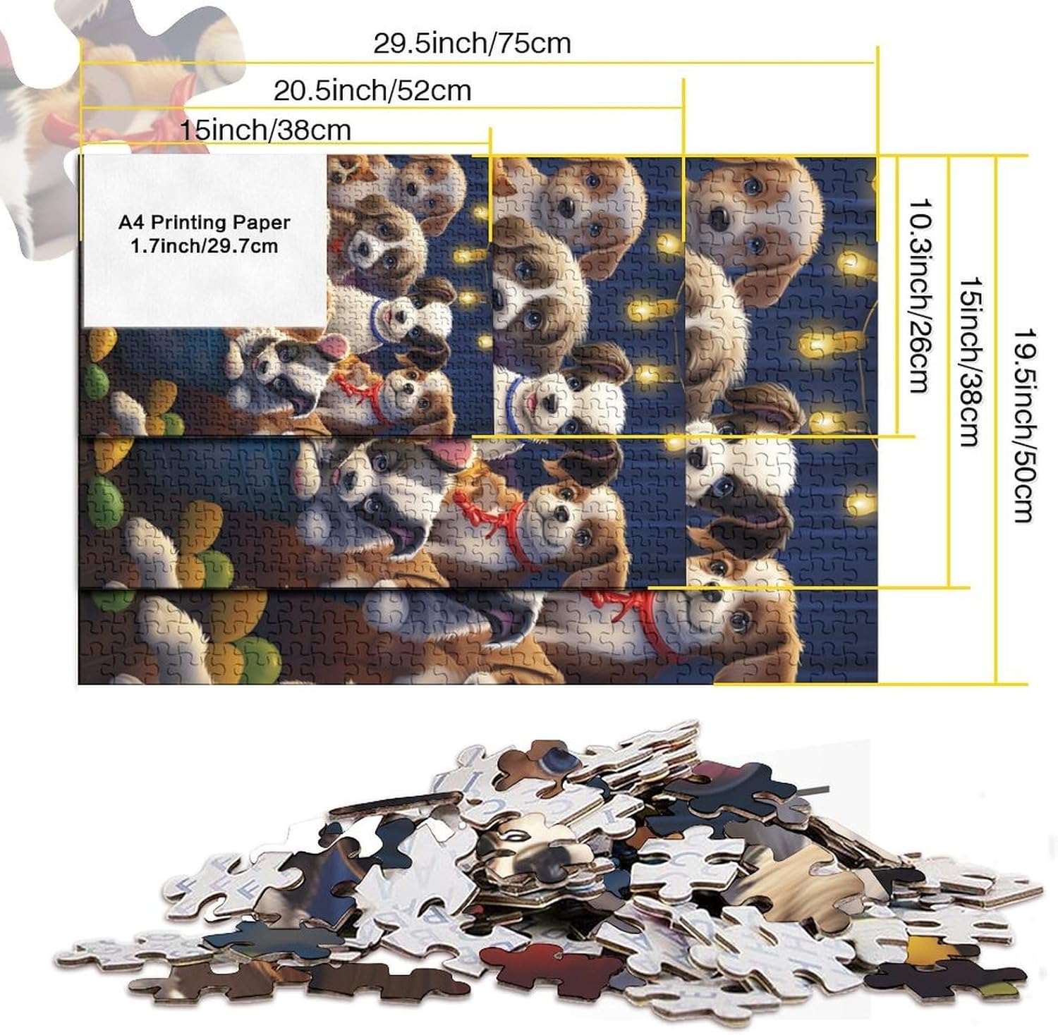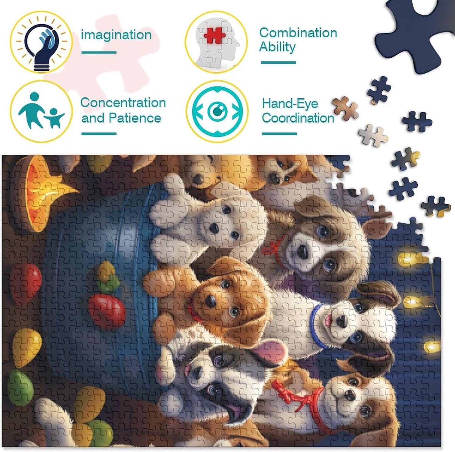 🌸GIOCHI PER ADULTI: una sfida emozionante da regalare a tutti li appassionati di puzzle e amanti dell'arte, ideale per uomo, donna o ragazzi; i puzzle aiutano a esercitare la memoria, migliorano la concentrazione e stimolano l'intuizione 🌸QUALITÀ PREMIUM: il massimo del divertimento con prodotti di altissima qualità in termini di materiali, motivi e design; realizzati in legno tagliati con fustelle fatte a mano, per un risultato impeccabile 🌸Buon regalo: il Cute pets puzzle finito misura 38x26cm/1000pcs una volta completato. I migliori regali per ragazzi e ragazze dai 14 anni in su per compleanni o festività (Natale, Halloween, Ringraziamento, ecc.) 🌸Concediti una piacevole pausa relax! La nostra linea di puzzle da Puppies 1000 pezzi è il regalo perfetto per chi ama ritagliarsi un momento di svago e di relax mettendo alla prova le proprie abilità logiche e di concentrazione 🌸I nostri Puzzle ti offrono un'ampia scelta d'immagini capace di soddisfare i gusti di tutti: grazie alla qualità dei materiali riciclati, la robustezza e resistenza dei singoli pezzi insieme alla brillantezza dei colori, ti garantiamo un risultato impeccabile e privo di riflessi
