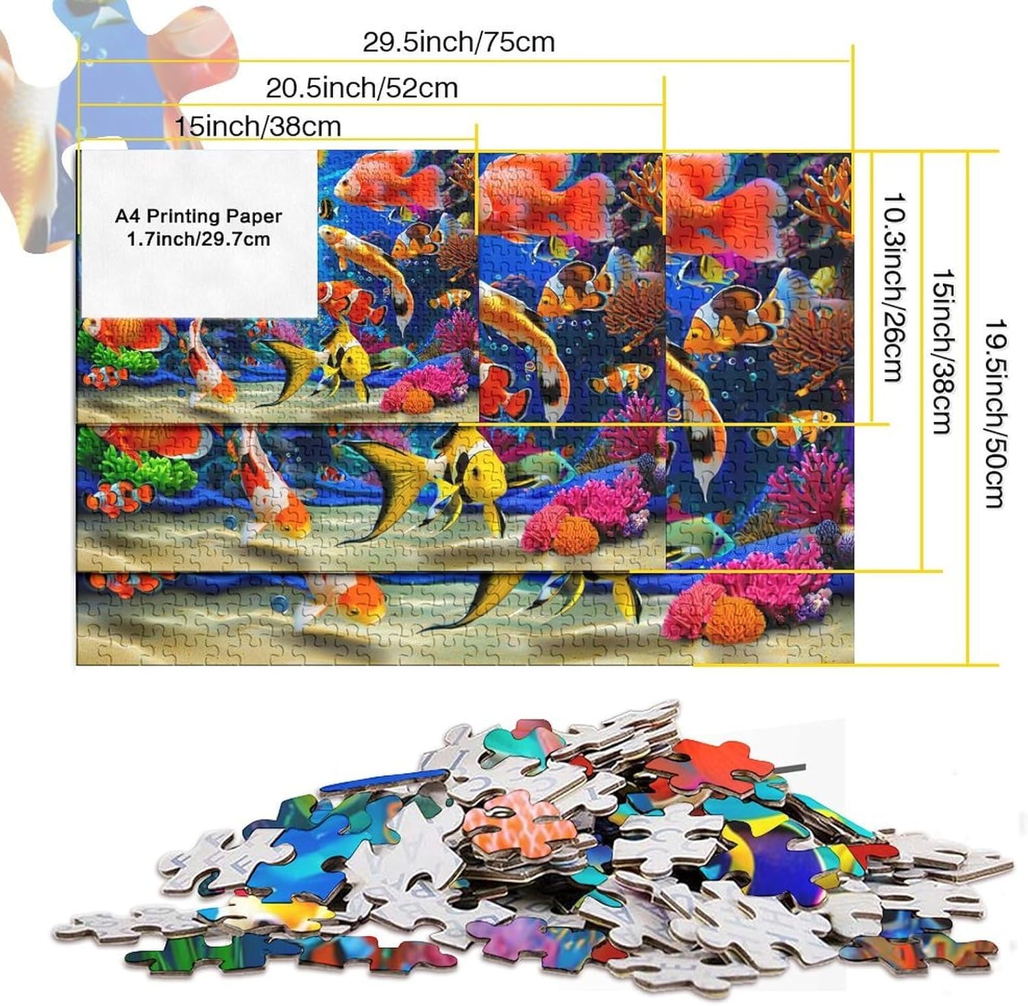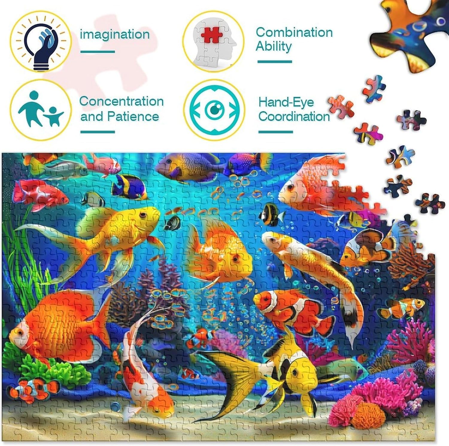 🌸GIOCHI PER ADULTI: una sfida emozionante da regalare a tutti li appassionati di puzzle e amanti dell'arte, ideale per uomo, donna o ragazzi; i puzzle aiutano a esercitare la memoria, migliorano la concentrazione e stimolano l'intuizione 🌸QUALITÀ PREMIUM: il massimo del divertimento con prodotti di altissima qualità in termini di materiali, motivi e design; realizzati in legno tagliati con fustelle fatte a mano, per un risultato impeccabile 🌸Buon regalo: il the underwater world puzzle finito misura 38x26cm/1000pcs una volta completato. I migliori regali per ragazzi e ragazze dai 14 anni in su per compleanni o festività (Natale, Halloween, Ringraziamento, ecc.) 🌸Concediti una piacevole pausa relax! La nostra linea di puzzle da School of Fish 1000 pezzi è il regalo perfetto per chi ama ritagliarsi un momento di svago e di relax mettendo alla prova le proprie abilità logiche e di concentrazione 🌸I nostri Puzzle ti offrono un'ampia scelta d'immagini capace di soddisfare i gusti di tutti: grazie alla qualità dei materiali riciclati, la robustezza e resistenza dei singoli pezzi insieme alla brillantezza dei colori, ti garantiamo un risultato impeccabile e privo di riflessi
