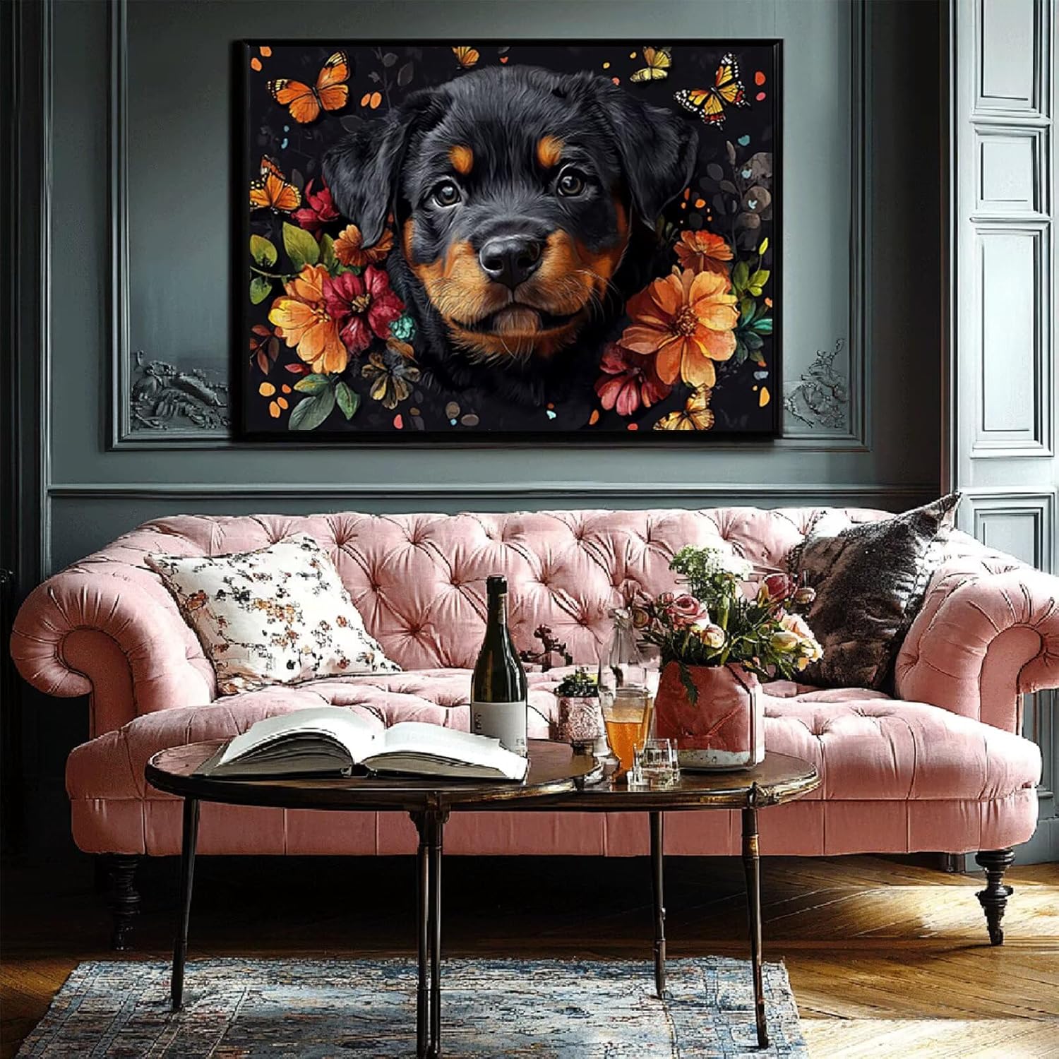 Puzzle 1000 Pieces Cane e fiori Gioco Educativo Intellettuale Migliora La Concentrazione E La Creatività, Puzzle Adulti E Ragazzi Da 14 Anni Compact Box Con Poster Incluso Idea Regalo Uomo E Donna M-9