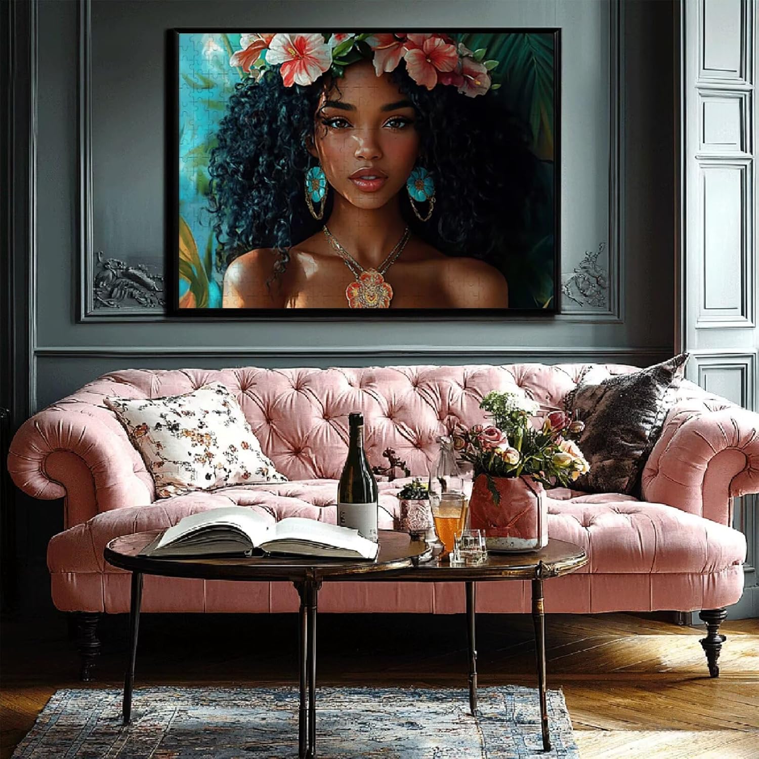 Puzzle 1000 Pieces Donna con fiori in testa Gioco Intellettuale Migliora La Concentrazione E Creatività, Puzzle Adulti E Ragazzi Da 14 Anni, Compact Box Con Poster Incluso Idea Regalo Donna S-4