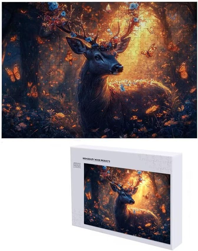 Puzzle 1000 Pieces Farfalla e cervo Gioco Educativo Intellettuale Migliora La Concentrazione E Creatività, Puzzle Adulti E Ragazzi Da 14 Anni Compact Box Con Poster Incluso Idea Regalo Uomo/Donna J-8