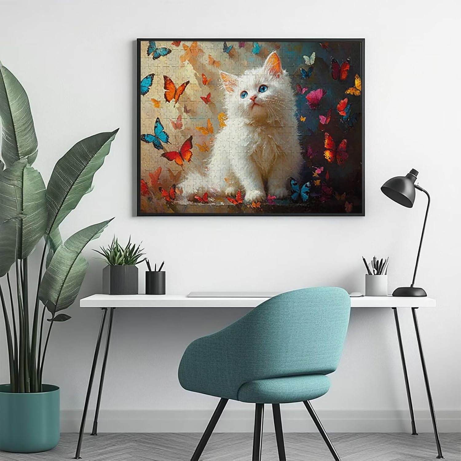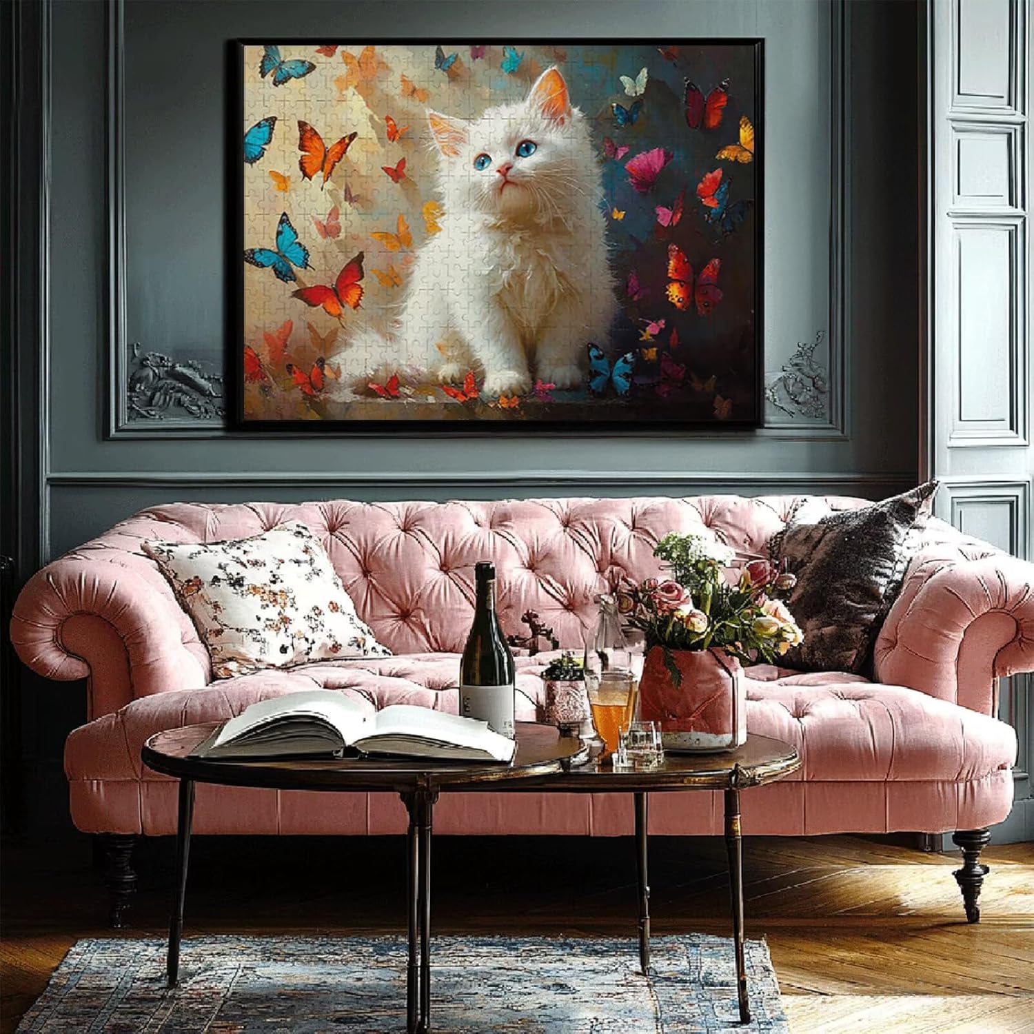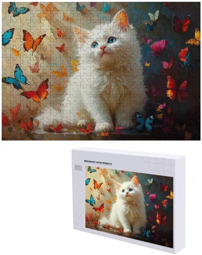 Puzzle 1000 Pieces Gatto e farfalla Gioco Educativo Intellettuale Migliora La Concentrazione E Creatività, Puzzle Adulti E Ragazzi Da 14 Anni Compact Box Con Poster Incluso Idea Regalo Uomo/Donna P-6