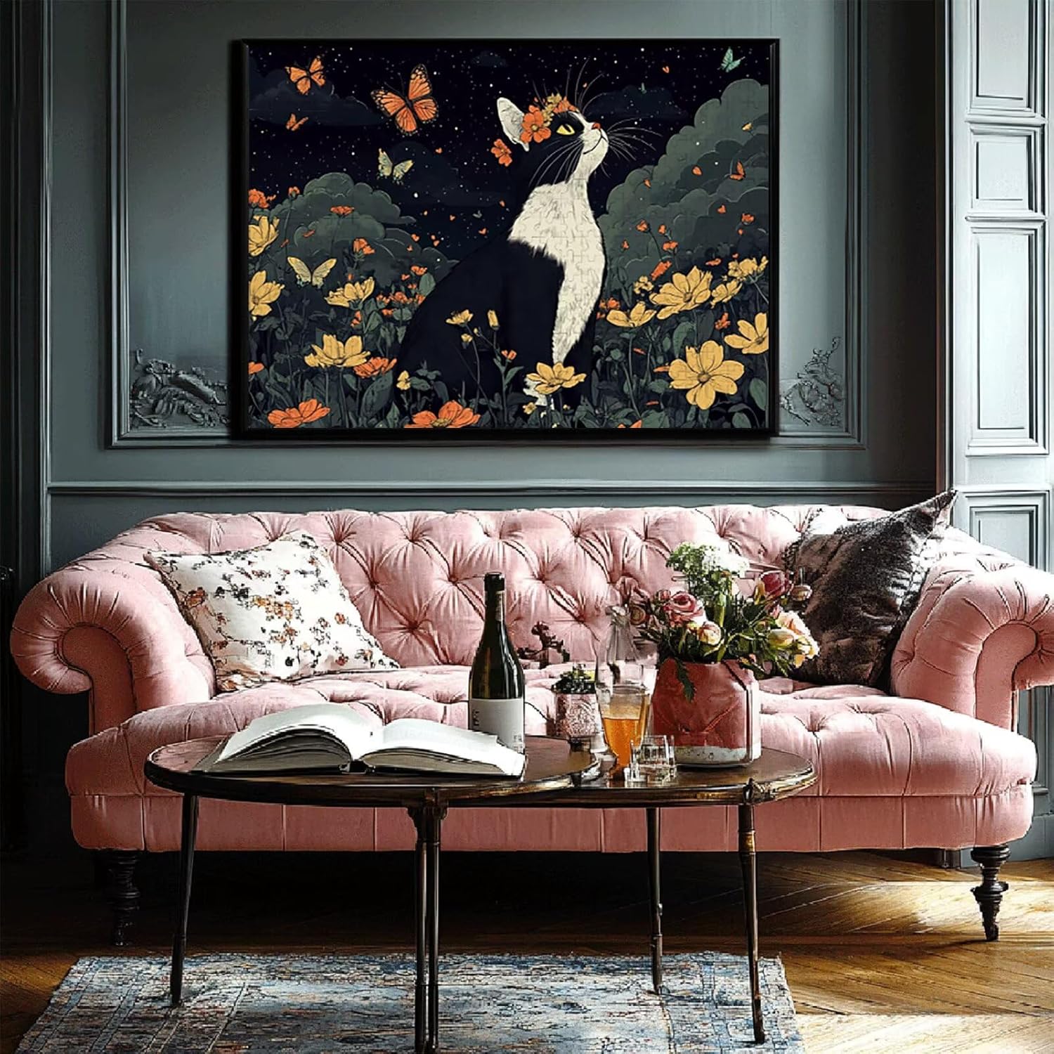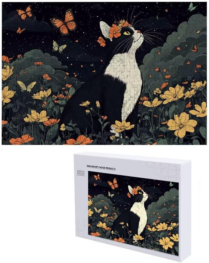 Puzzle 1000 Pieces Gatto e farfalla Puzzle Impossibili Giocattolo Intellettuale Adatto per Adulti O Bambini Sopra I 14 Anni, Calma La Tua Mente Riduce Lo Stress Di Lavoro Idea Regalo Uomo/Donna F-1