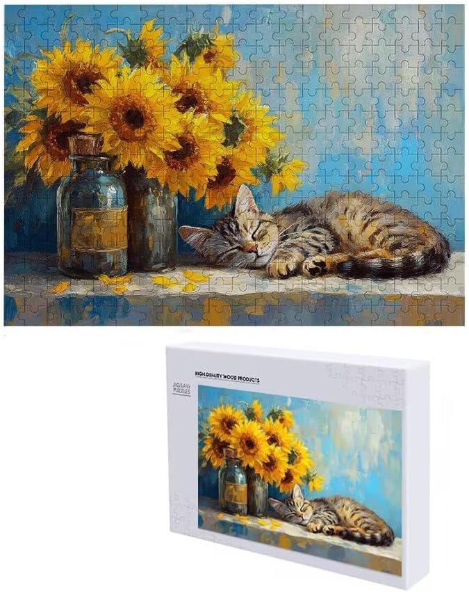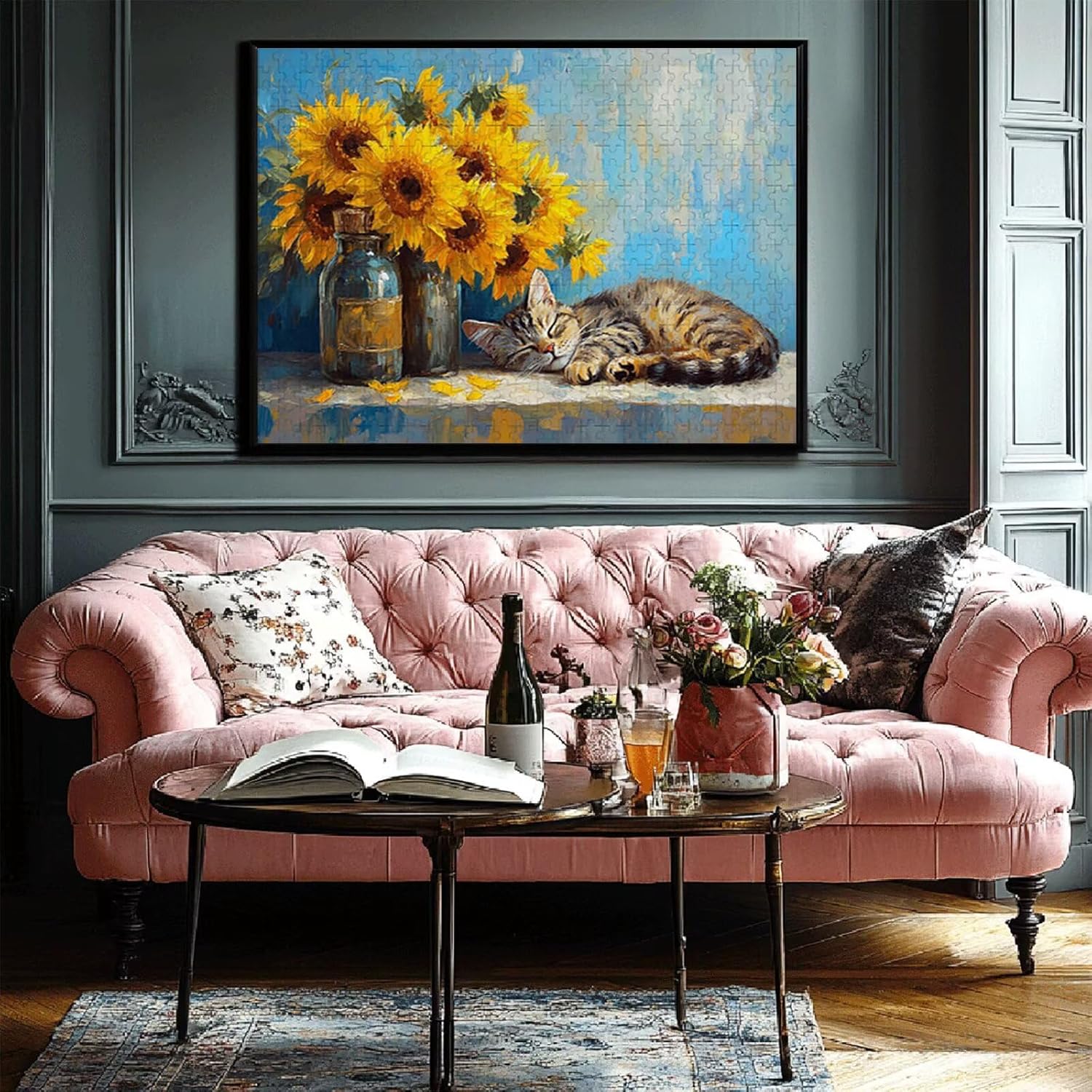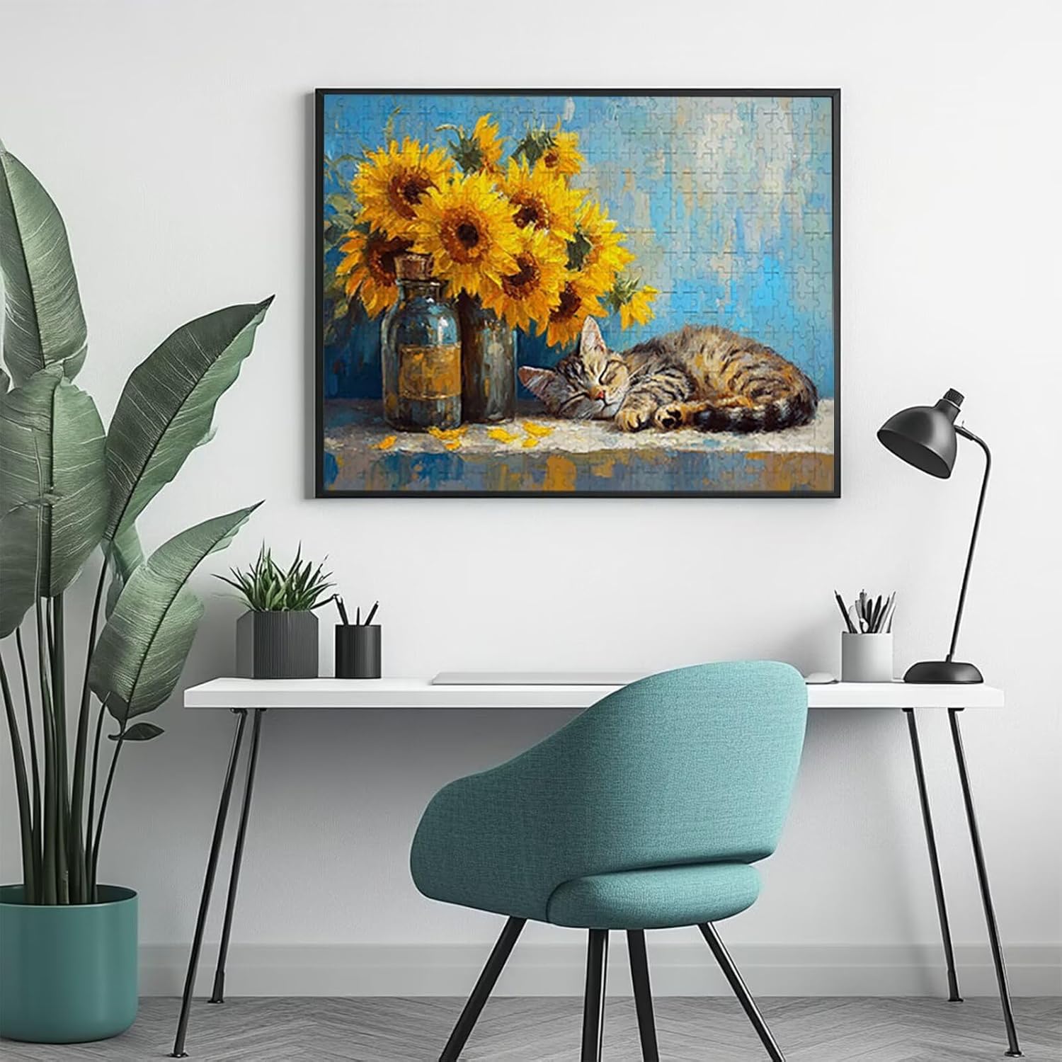 Puzzle 1000 Pieces Girasole e gatto Gioco Educativo Intellettuale Migliora La Concentrazione E Creatività, Puzzle Adulti E Ragazzi Da 14 Anni Compact Box Con Poster Incluso Idea Regalo Uomo/Donna P-9