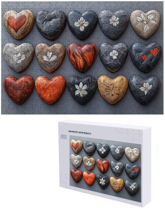 Puzzle 1000 Pieces Pietra a forma di cuore Gioco Intellettuale Migliora La Concentrazione E Creatività, Puzzle Adulti E Ragazzi Da 14 Anni, Compact Box Con Poster Incluso Idea, Regalo Donna L-0