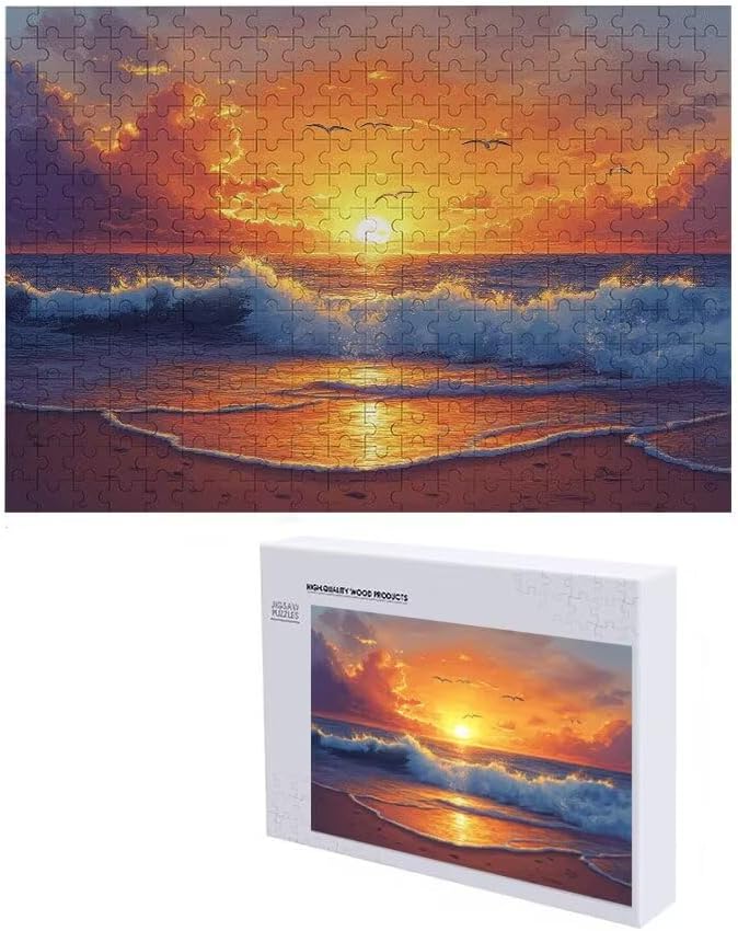 Puzzle 1000 Pieces Tramonto sul mare Gioco Educativo Intellettuale Migliora La Concentrazione E Creatività, Puzzle Adulti E Ragazzi Da 14 Anni Compact Box Con Poster Incluso Idea Regalo Uomo/Donna R-6