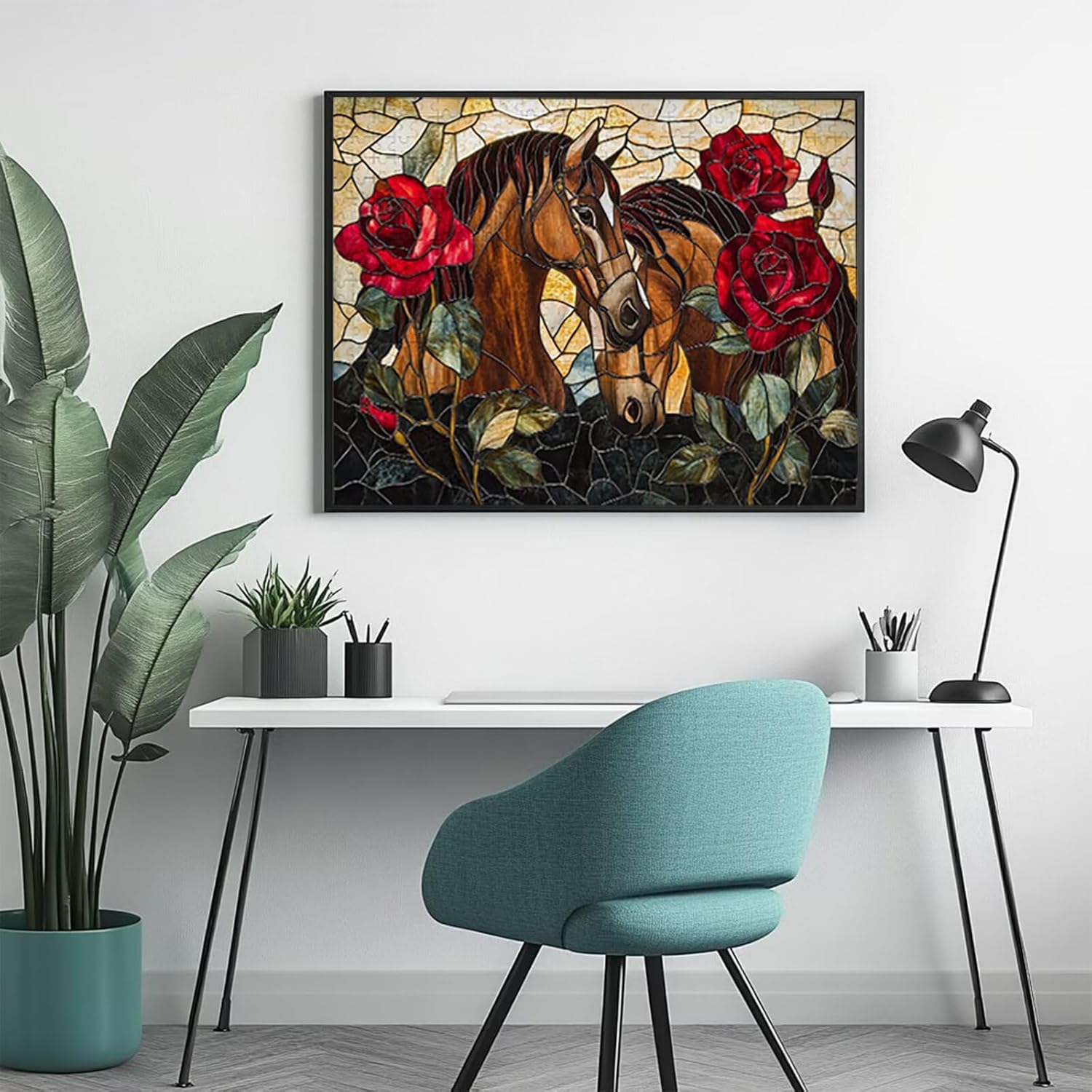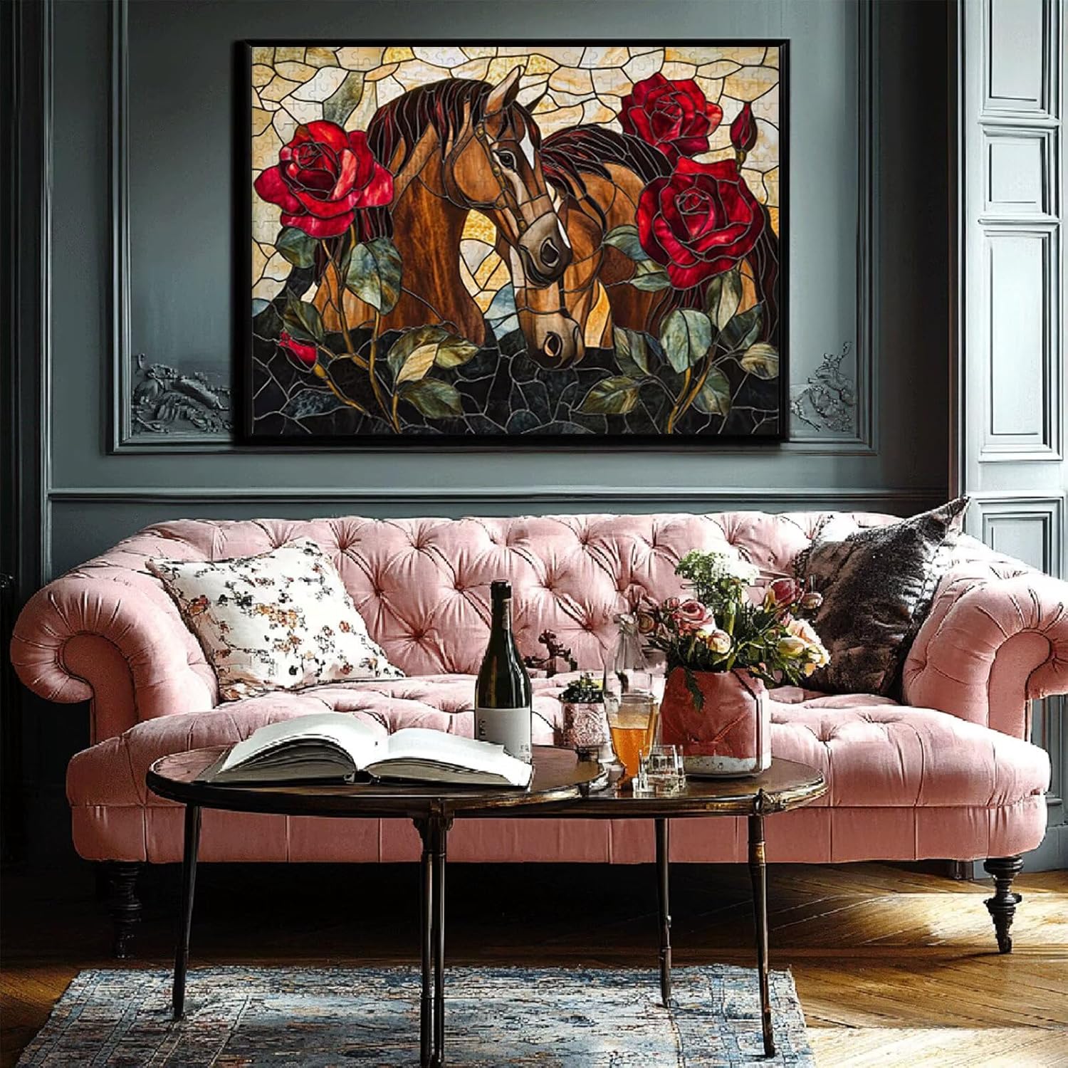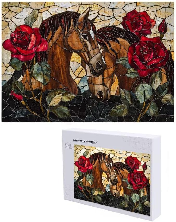Puzzle 1500 Pieces Cavallo e rose Gioco Educativo Intellettuale Migliora La Concentrazione E Creatività, Puzzle Adulti E Ragazzi Da 14 Anni Compact Box Con Poster Incluso Idea Regalo Uomo E Donna V-0