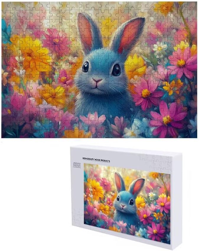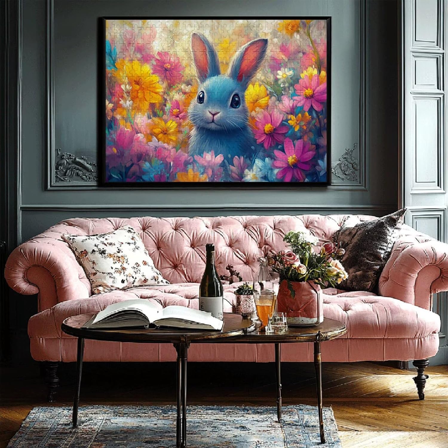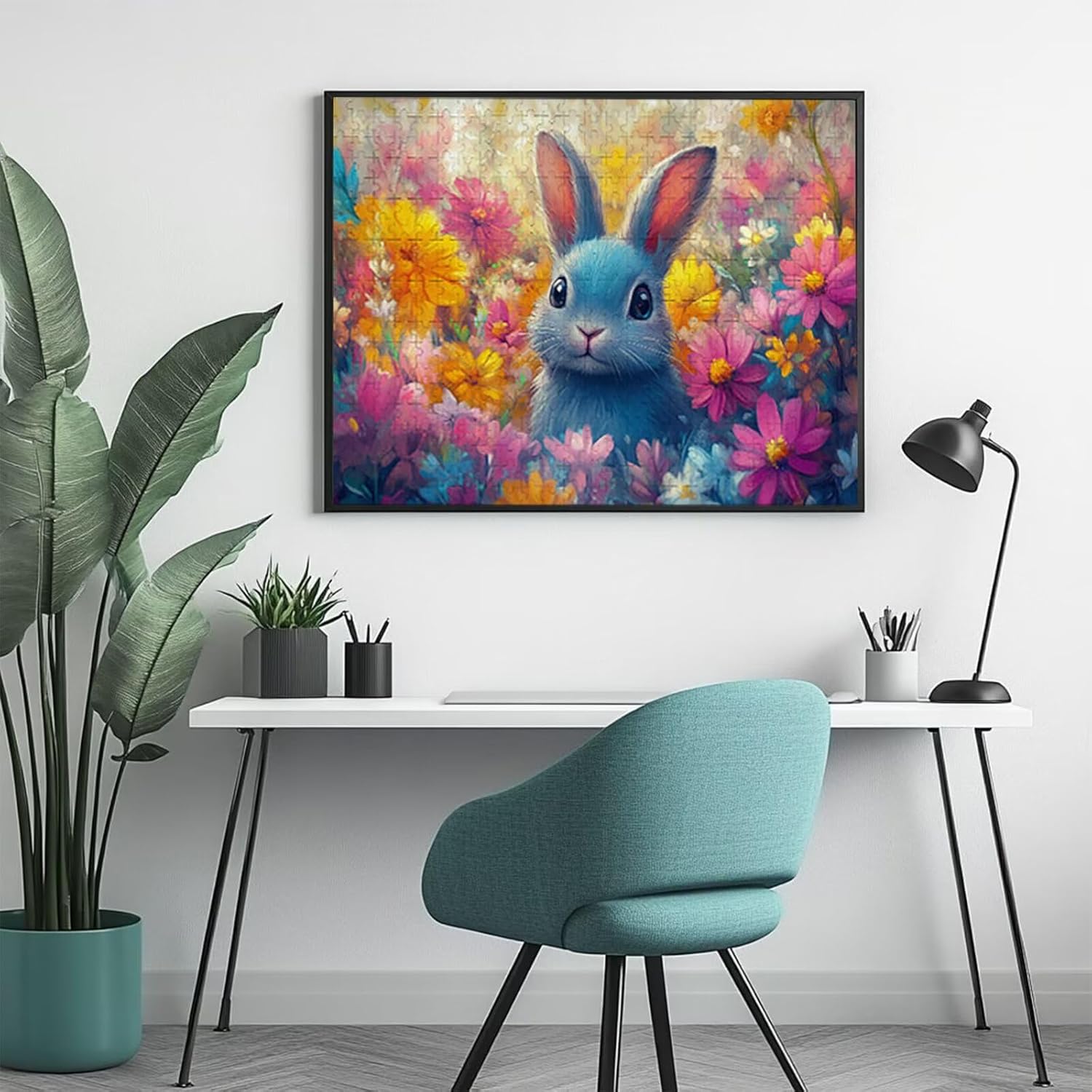 Puzzle 1500 Pieces Coniglio e fiori Gioco Educativo Intellettuale Migliora La Concentrazione E Creatività, Puzzle Adulti E Ragazzi Da 14 Anni Compact Box Con Poster Incluso Idea Regalo Uomo/Donna Q-8