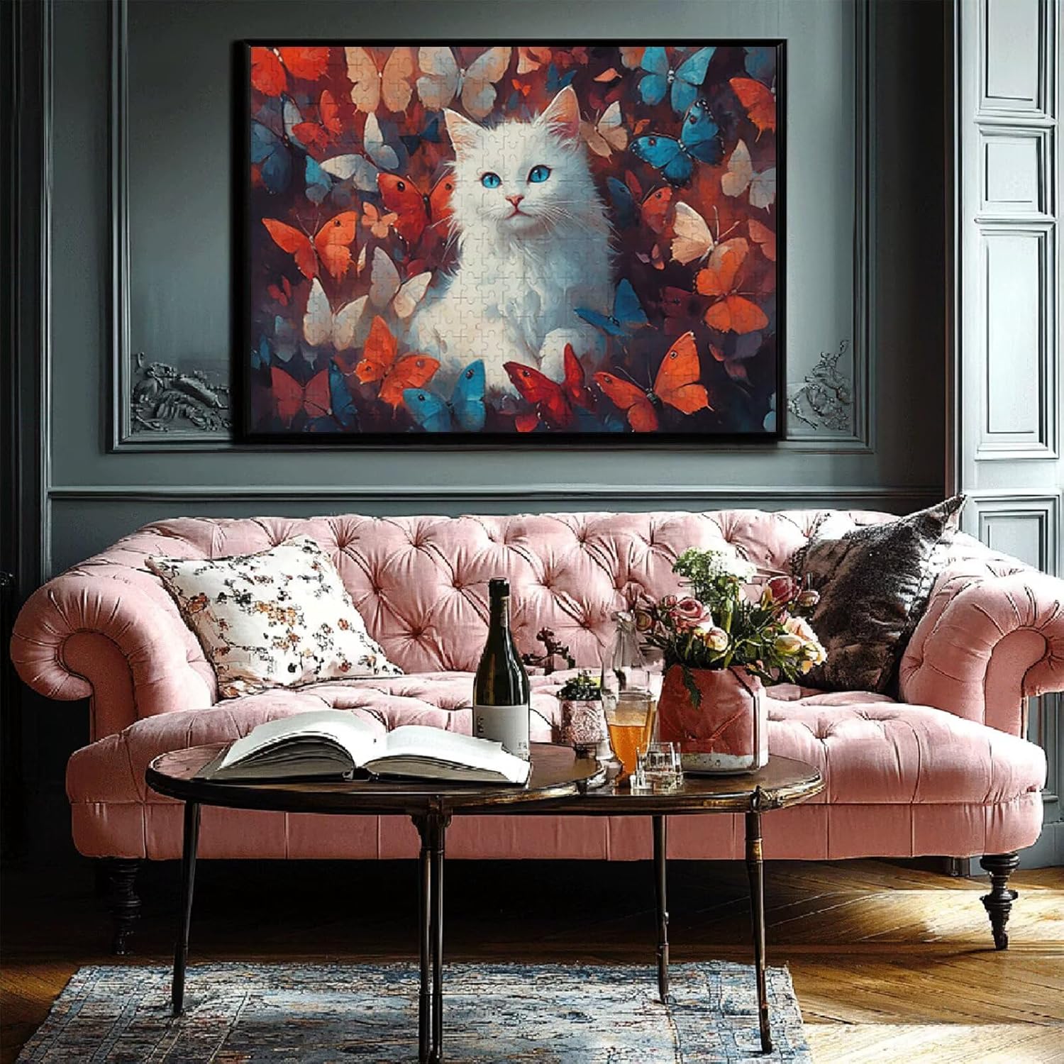 Puzzle 1500 Pieces Gatto e farfalla Puzzle Impossibili Giocattolo Intellettuale Adatto per Adulti O Bambini Sopra I 14 Anni, Calma La Tua Mente Riduce Lo Stress Di Lavoro Idea Regalo Uomo/Donna A-4