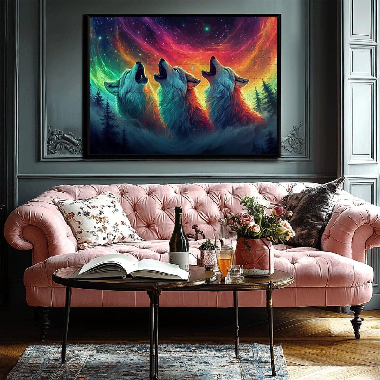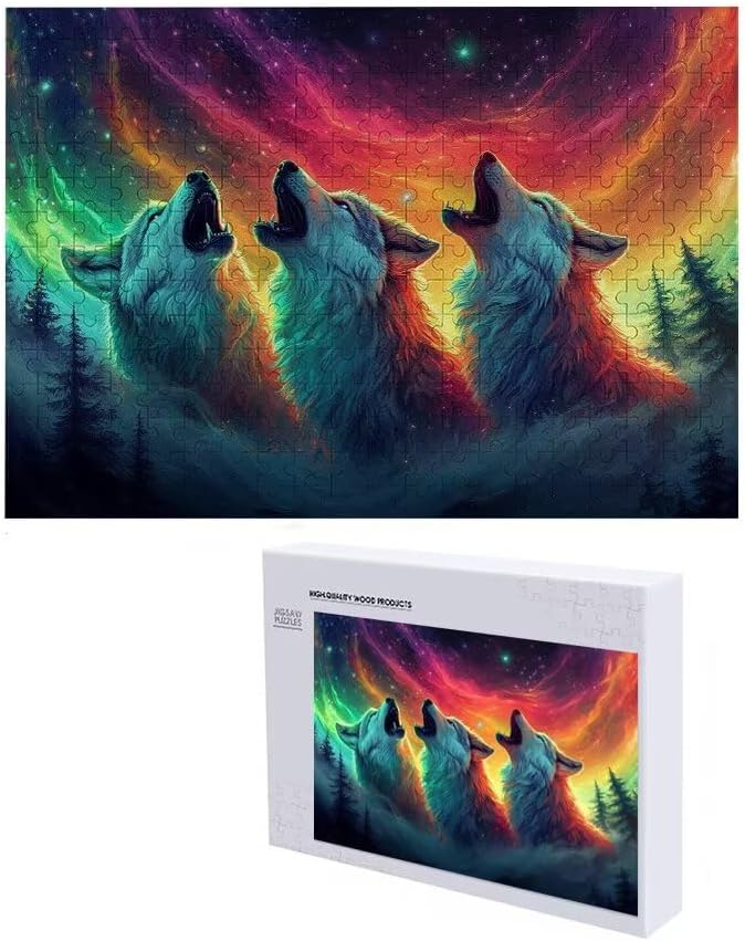 Puzzle 2000 Pieces Aurora boreale e lupi Puzzle Impossibili Giocattolo Intellettuale Adatto per Adulti O Bambini Sopra I 14 Anni, Calma La Tua Mente Riduce Lo Stress Di Lavoro Idea Regalo Donna T-9