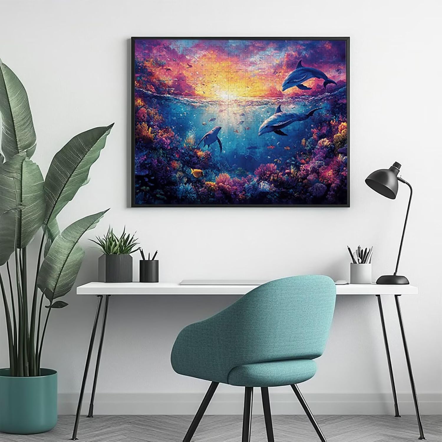 Puzzle 2000 Pieces delfino Gioco Educativo Intellettuale Migliora La Concentrazione E La Creatività, Puzzle Adulti E Ragazzi Da 14 Anni Compact Box Con Poster Incluso Idea Regalo Uomo E Donna M-9