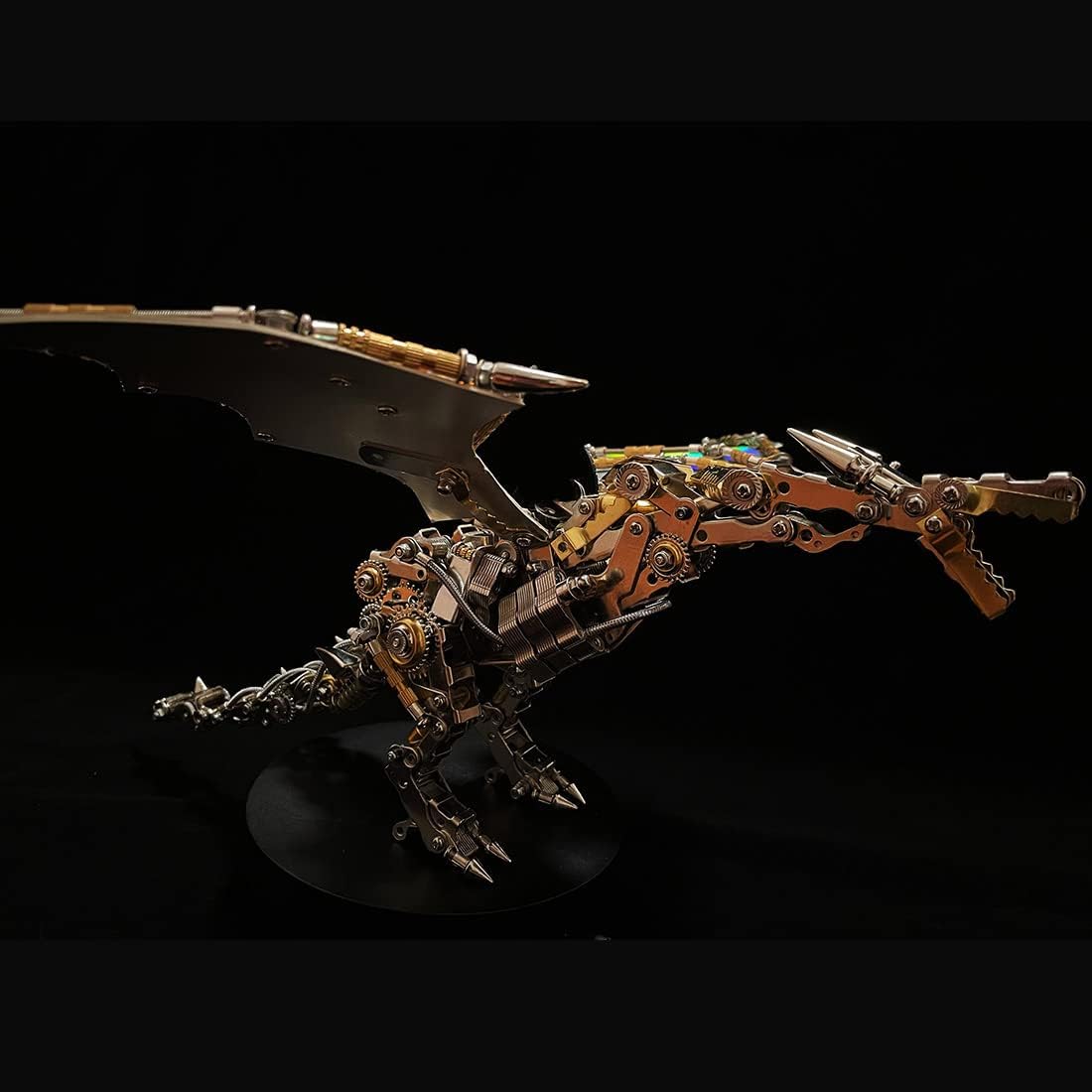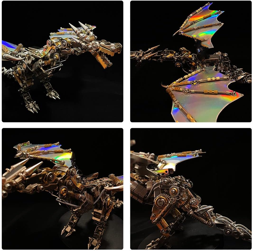 Concetto di design: Ispirato ai personaggi del vero drago volante, il modello presenta complessi dettagli fantascientifici che lo rendono unico e visivamente accattivante. Viene fornito con una staffa in acciaio inossidabile per un design nuovo e accattivante. Sostituzione delle ali: oltre alle ali colorate del drago, le ali grigie e bianche abbinate aggiungono interesse e giocabilità senza causare affaticamento visivo. Materiali di alta qualità: questo modello di giocattolo è realizzato con materiali metallici di alta qualità durevoli, robusti e durevoli, ecologici e riutilizzabili, sicuramente la scelta ideale per collezionisti e amanti. Divertente ed educativo: il prodotto non offre solo un'esperienza di assemblaggio stimolante e divertente, ma anche un'esperienza educativa. Può anche essere una divertente attività familiare o uno strumento educativo in classe. Ornamento decorativo: come elemento decorativo sulla scrivania di casa o in ufficio, aggiunge un tocco di eleganza e delicatezza a qualsiasi decorazione. Come regalo eccellente per gli amanti dell'arte, della tecnologia o dei prodotti in metallo durante i festival. È anche un regalo ideale per le persone interessate all'istruzione STEM.