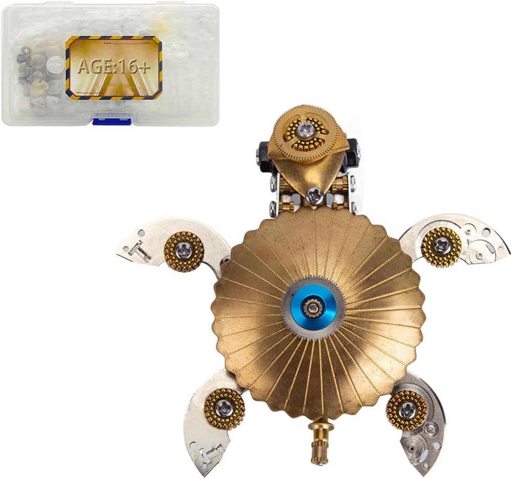 Tartaruga Steampunk creativa - Questo modello di tartaruga meccanica in stile retrò cattura la postura realistica delle creature marine, completata da texture superficiali dettagliate e un'audace estetica metallica. e istruzioni passo passo per un'esperienza di costruzione pratica, ideale per legare con la famiglia o rilassarsi da soli.,Regalo ed esposizione perfetti: un regalo perfetto per Natale o compleanno, questo modello di organismo marino in metallo funge anche da elegante oggetto di arredamento per la casa, luce d'atmosfera o da collezione