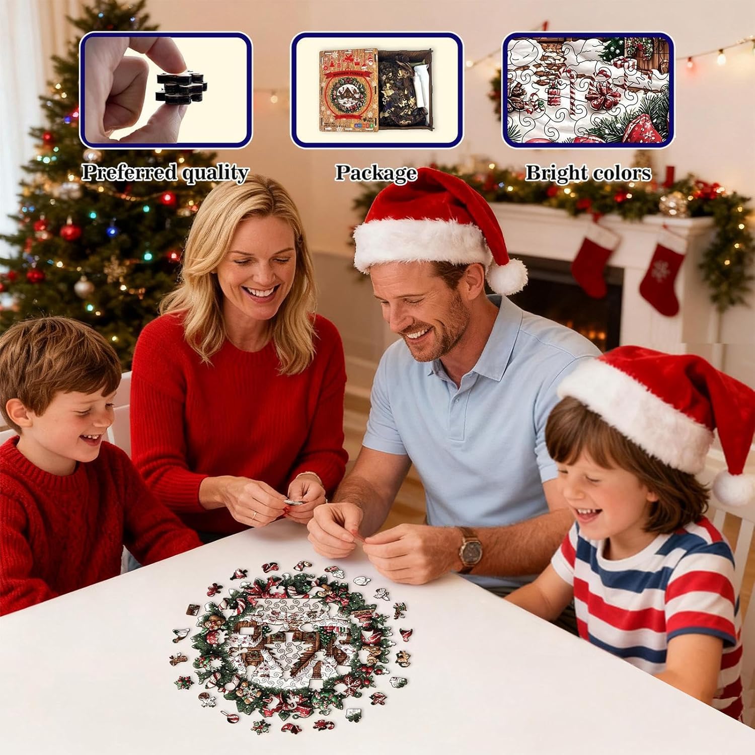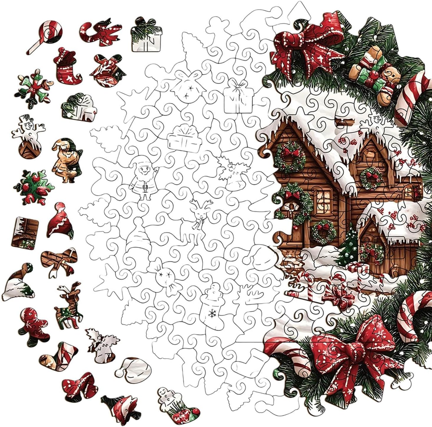 Motivi organici coinvolgenti: con pezzi progettati per imitare le forme naturali dei rami e delle bacche di pino, questi puzzle incorporano irregolarità per un'esperienza di risoluzione coinvolgente. Supportati da tecniche avanzate di taglio di precisione, promuovono consapevolezza e divertimento, adatti a sfide individuali o momenti condivisi con amici appassionati di puzzle particolari. I motivi organici aggiungono una dimensione artistica ad ogni passo del sé. Incantevole accento natalizio: con il suo elegante tema ghirlanda natalizia e i classici dettagli festivi come i rami di pino, questo puzzle diventa un oggetto artistico da collezione che aggiungerà calore e fascino alla tua casa onorando la stagione. Ideale per le decorazioni di fine anno, diffonde un'atmosfera calda e incantevole, perfetta per ravvivare gli interni durante le riunioni di famiglia e le serate festive. Scelta regalo perfetta: scegli questo puzzle per adulti come regalo ideale per trasmettere la tua tenerezza e riflessione quando lo regali a ragazzi, ragazze o adolescenti in occasioni speciali come compleanni, feste, Natale o Capodanno. Garantisce momenti condivisi di divertimento e complicità creando momenti sinceri e divertenti che avvicinano le persone care attraverso un'esperienza di gioco divertente. Puzzle in legno: questi puzzle sono realizzati in legno di alta qualità che resiste all'usura pur mantenendo colori vivaci e vibranti. Forniscono una sensazione morbida e calda e migliorano le piacevoli esperienze di gioco in ambienti educativi o a casa. La loro resistenza li rende ideali per sessioni di studio e intrattenimento familiare. Sviluppa il lavoro di squadra: i puzzle per adulti incoraggiano le famiglie a lavorare insieme come un rompicapo, migliorando la collaborazione e promuovendo legami significativi. Rendono le vacanze e i fine settimana indimenticabili con l'intrattenimento su schermo condiviso, stimolando la comunicazione e la risoluzione congiunta dei problemi in un ambiente giocoso.