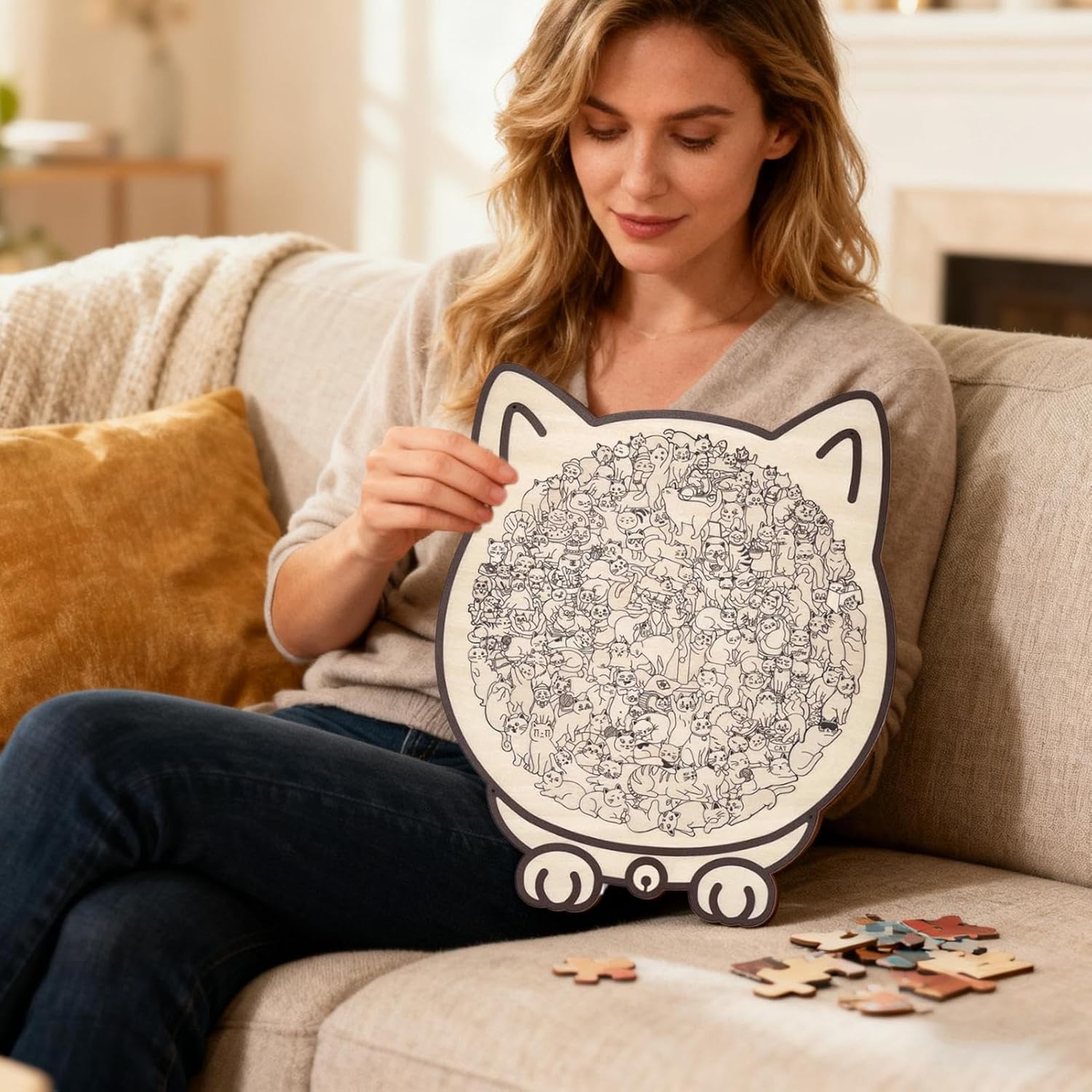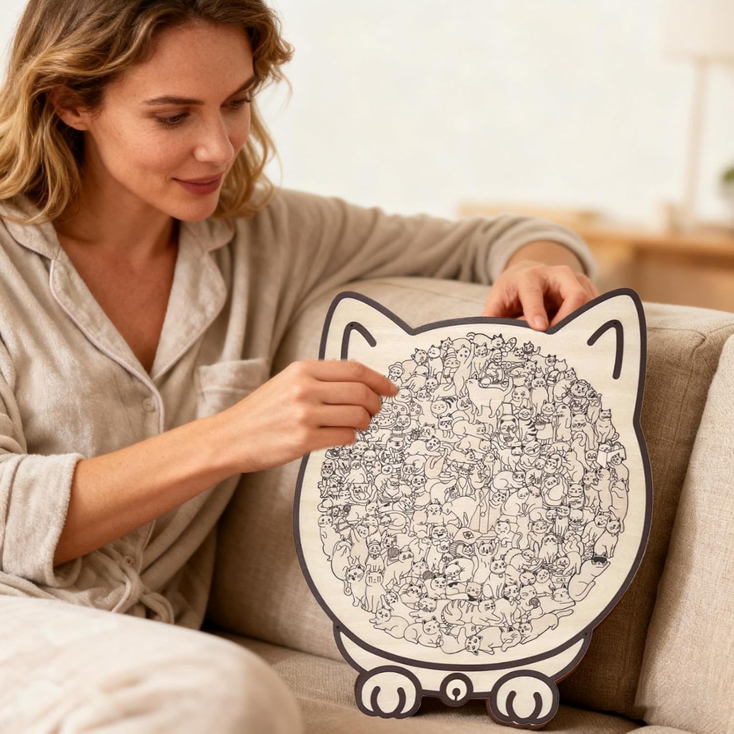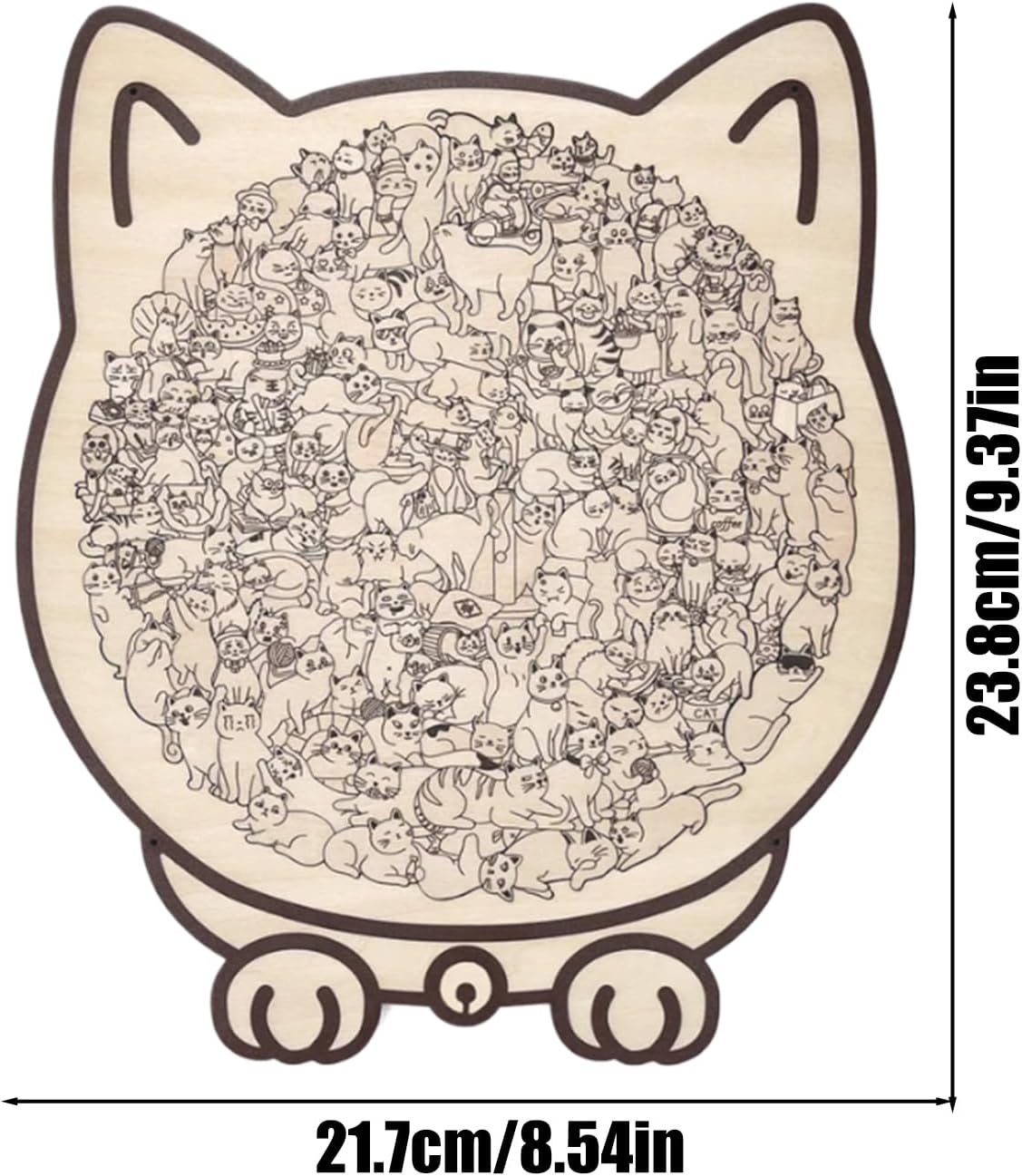 Materiale resistente: i puzzle per gatti in legno sono caratterizzati da superfici finemente levigate che garantiscono una levigatezza senza schegge per una manipolazione sicura durante l'assemblaggio dei pezzi di legno naturale, che sono forti e robusti, non si deformeranno nel tempo e aumentano il comfort durante le attività dei puzzle familiari Concentrazione e relax: il puzzle per gatti in legno è progettato per alleviare lo stress del lavoro e dell'apprendimento attraverso il feedback tattile in legno, fornendo un graduale sollievo dallo stress e promuovendo uno stato calmo e concentrato. È uno strumento eccellente per momenti consapevoli a casa o in ufficio Ampiamente usato: il puzzle in legno a forma di gatto funge sia da puzzle funzionale che da elegante pezzo decorativo per il soggiorno. Con il suo design affascinante, migliora la collocazione in camera da letto pur essendo ideale per l'uso nel dormitorio e sul comodino per il relax e la stimolazione mentale nelle sale studio, completato dalla perfetta integrazione negli scaffali. Regalo meraviglioso: il puzzle in legno del gatto unisce fascino ed emozione. È progettato per entrare in risonanza con gli amanti degli animali rafforzando al tempo stesso i legami quando viene presentato ad amici o familiari, rendendolo un regalo davvero significativo per qualsiasi evento. Dettagli artistici ispirati ai gatti: evidenziando tecniche di taglio fini e geometria non tradizionale, questo puzzle in legno a forma di gatto presenta intricati motivi di texture di pelliccia, perfetti per un'attività ricreativa rilassante ma stimolante