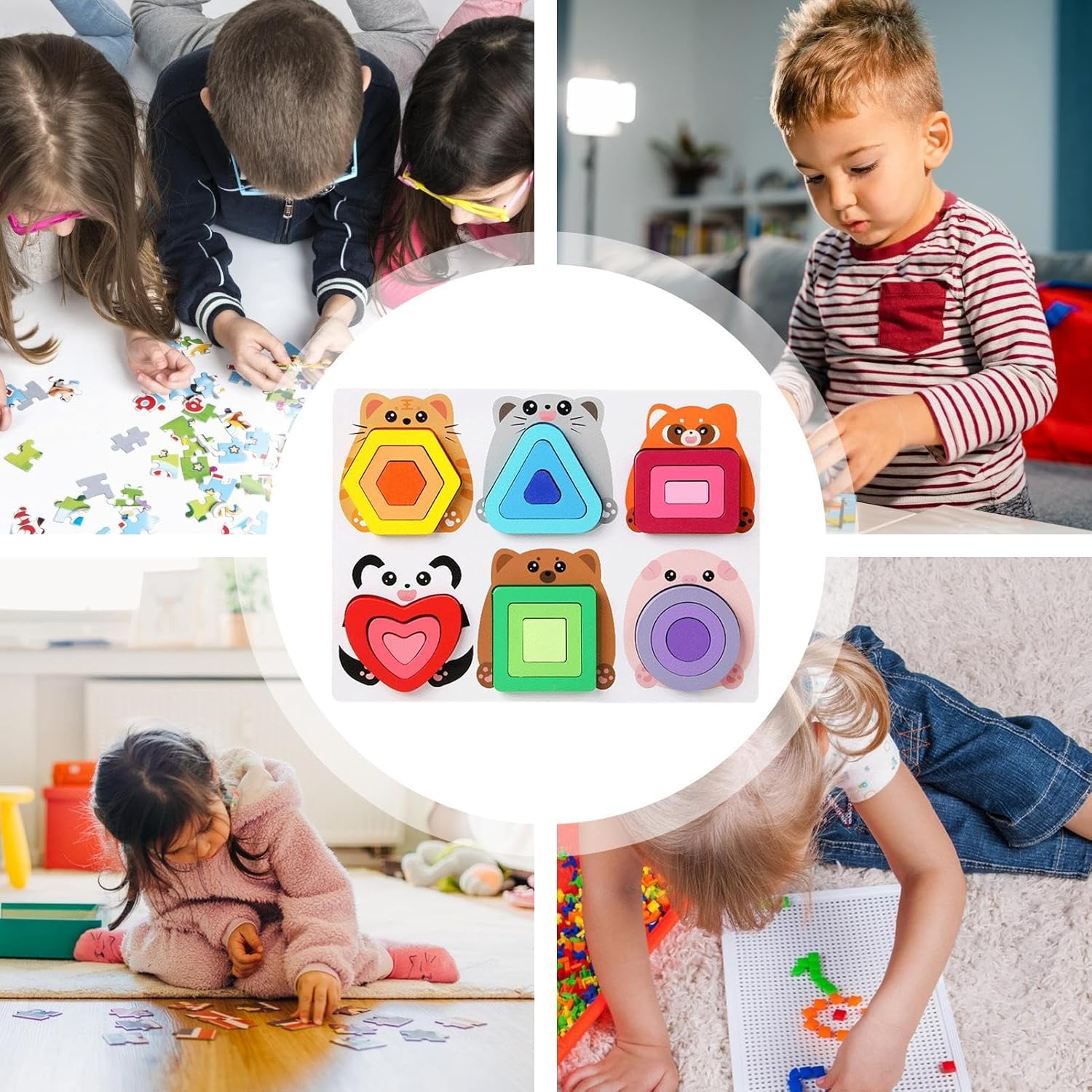 Materiale durevole: realizzato in legno sostenibile e durevole con bordi lucidi e vernice atossica a base d'acqua per la sicurezza ottimale dei bambini durante l'uso intensivo del giocattolo educativo. Esperienza di abbinamento: esplora diversi modelli di animali con attività di abbinamento di forme e giochi di posizionamento che promuovono le abilità cognitive con il gioco di abbinamento di forme e colori attraverso esercizi di abbinamento colorati e sfide di sviluppo. REGALO IDEALE: supporta importanti capacità di apprendimento e offre ore di divertimento educativo. Questo gioco di forme è un regalo perfetto per neonati o bambini piccoli in occasioni speciali. Incoraggia l'esplorazione e aiuta a sviluppare nuove abilità in modo giocoso. Migliora lo sviluppo della prima infanzia: incoraggia il riconoscimento di forme e colori e supporta la crescita delle capacità motorie per lo sviluppo naturale della prima infanzia e l'apprendimento attivo. Ampie applicazioni: incoraggia il gioco creativo e lo sviluppo di abilità con attività di impilamento personalizzabili, promuove l'equilibrio e lo sviluppo cognitivo sviluppando allo stesso tempo capacità innovative di risoluzione dei problemi