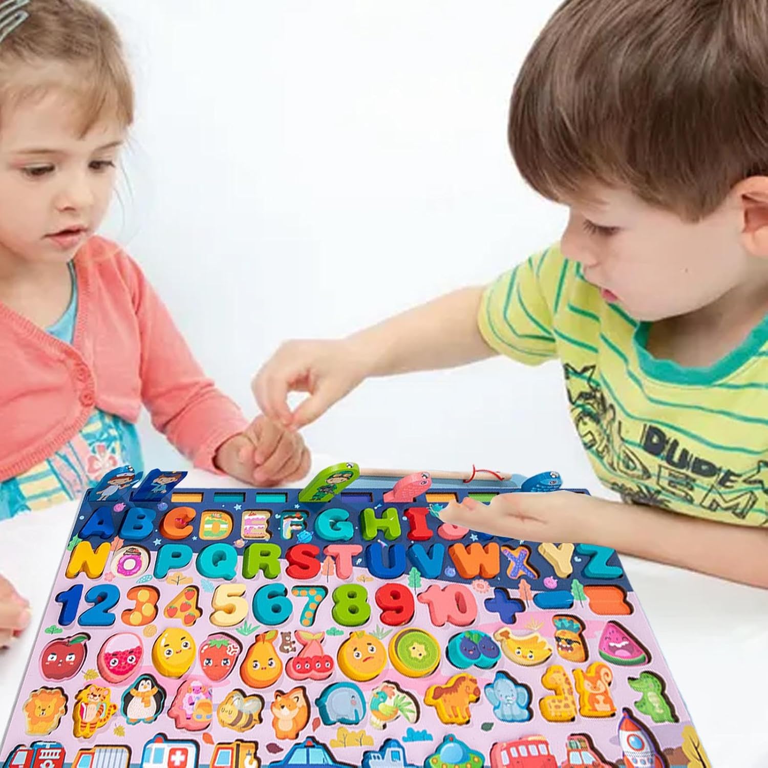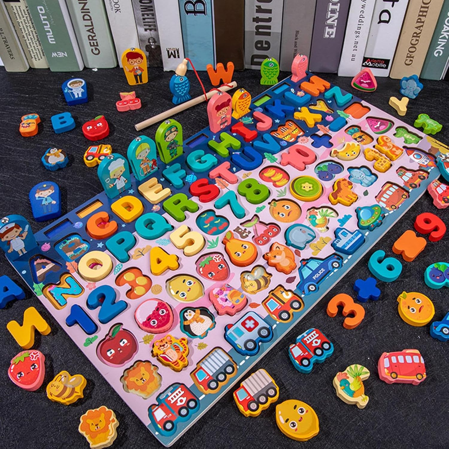 Puzzle versatile: liberare l'immaginazione di con un giocattolo versatile che offre molteplici attività di apprendimento, ispirando la creatività migliorando le capacità di risoluzione dei problemi con un innovativo set di puzzle 7 in 1 Immagina qualsiasi cosa: progettato per i bambini della scuola materna, i puzzle in legno incoraggiano la capacità di pensiero attraverso i disegni educativi, la creazione di creatività e il miglioramento della destrezza manuale Sicurezza per: costruito con ottimi materiali in legno per la sicurezza e il benessere di, dando ai genitori la fiducia necessaria per rilassarsi mentre li si coinvolgono nel tempo di gioco Migliorare la capacità di apprendimento: lasciarli fare bene lettere, numeri e basi del traffico coinvolgendo giochi di pesca e puzzle interessanti, educare attraverso il divertimento Presente creativo: questi puzzle in legno incoraggiano la curiosità e migliorano le capacità motorie, rendendolo un'opzione popolare per i genitori e promuovono un ambiente di apprendimento sano per i bambini