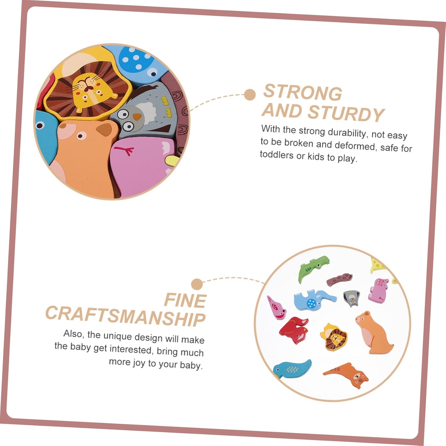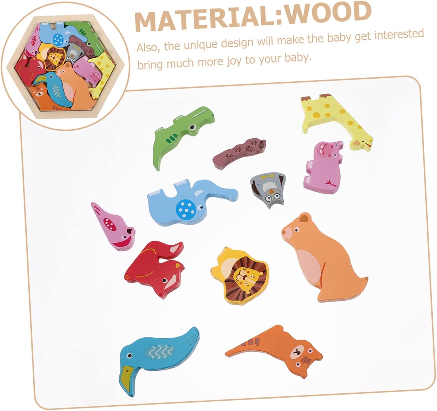 Puzzle con animali: adorabile design a forma di animale e colori vivaci, che possono attirare l'attenzione dei bambini. piacerà moltissimo questo puzzle giocattolo, puzzle di cartoni animati con animali: realizzato con materiali selezionati, quindi sicuro senza spigoli vivi, può essere fantastico per il compleanno o nella vita di tutti i giorni, puzzle di animali con animali in legno: duro e stabile, a prova di caduta, molto resistente, divertente ed educativo, puzzle giocattolo per bambini: aiuta i bambini a imparare i colori e il riconoscimento degli animali. Questo puzzle con animali è molto divertente, gioca mentre impari e ti intrattieni, puzzle prescolari Puzzle con animali in legno: lavorazione, struttura ragionevole, professionale e pratica, ti offre comodità, giocattoli per la scuola materna