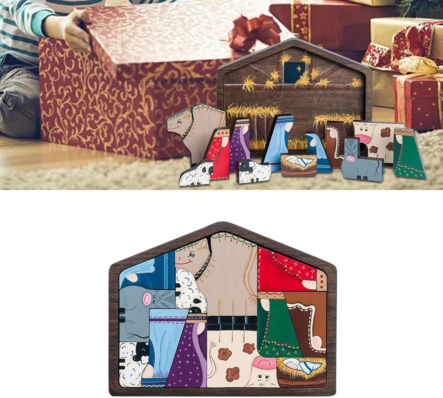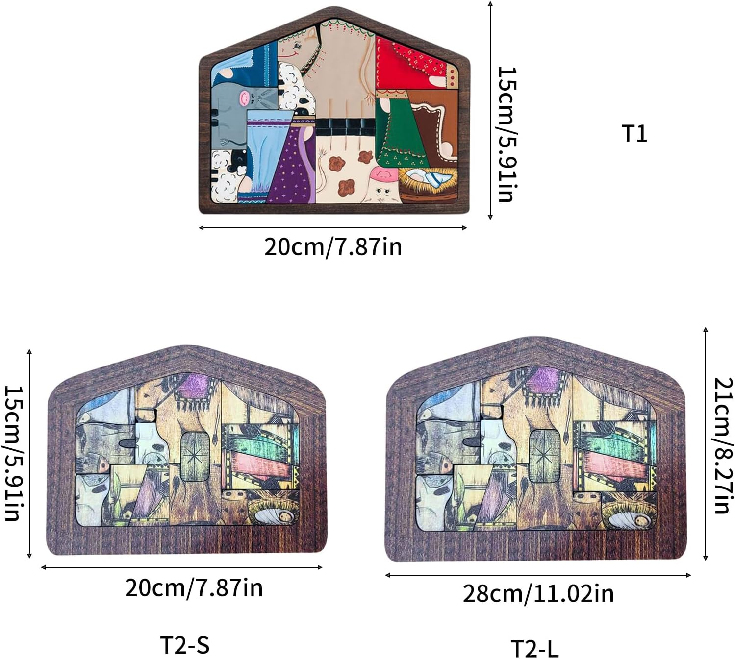 Questo ornamento religioso finemente dettagliato funge da ricordo significativo, incarnando sia il significato spirituale che la bellezza artistica Perfettamente adatto per il soggiorno, l'ufficio, la sala di preghiera o come decorazione natalizia, questo articolo aggiunge un tocco di sacra eleganza a qualsiasi interno Realizzato in legno di bosso, questo decoro durevole resiste allo sbiadimento e presenta una base stabile, assicurando che rimanga un elemento prezioso del tuo arredamento Adatto a credenti, appassionati di religione e collezionisti, questa decorazione eleva l'espressione artistica della fede in qualsiasi spazio La squisita fattura del nostro puzzle del Presepe catturare vividamente la nascita di Gesù, per migliorare l'atmosfera religiosa della tua casa