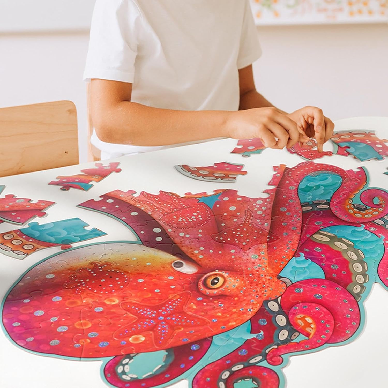 Comodo da usare: utilizzando il nostro puzzle da pavimento Octopus, i genitori possono ridurre il rischio che il loro bambino ingerisca accidentalmente piccole parti grazie al suo design a di grandi dimensioni. Inoltre, questo design rende il puzzle più facile da afferrare e assemblare per le mani piccole Modello innovativo: libera i talenti creativi di tuo figlio con questo puzzle da pavimento Octopus. Una volta completato, forma un modello unico che può essere steso sul pavimento, aggiungendo una nuova forma di gioco per far divertire i bambini e migliorare le loro abilità Attraente puzzle da pavimento: questo puzzle da pavimento con polpo ha un design glitterato che attira l'attenzione e rende il motivo vivido e interessante una volta completato Ampia applicazione: migliora il pensiero logico e le capacità motorie risolvendo il nostro puzzle da pavimento Octopus, coltivando capacità di risoluzione dei problemi attraverso diversi scenari di utilizzo Adorabile stile cartone animato: immergi il tuo bambino in un mondo di fantasia con questo affascinante puzzle da pavimento con un design a cartone animato. Realizzato in modo impeccabile con pregevole fattura e colori vivaci, aggiunge un tocco giocoso a qualsiasi stanza e migliora l'esperienza di gioco del tuo bambino