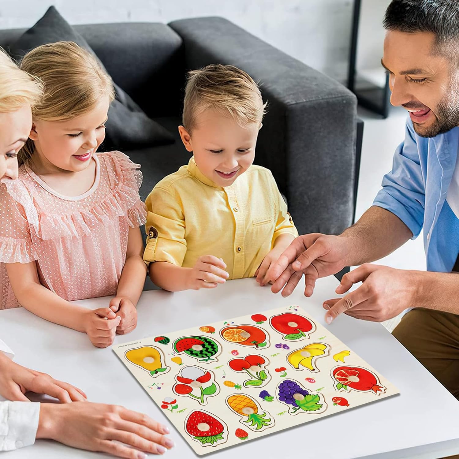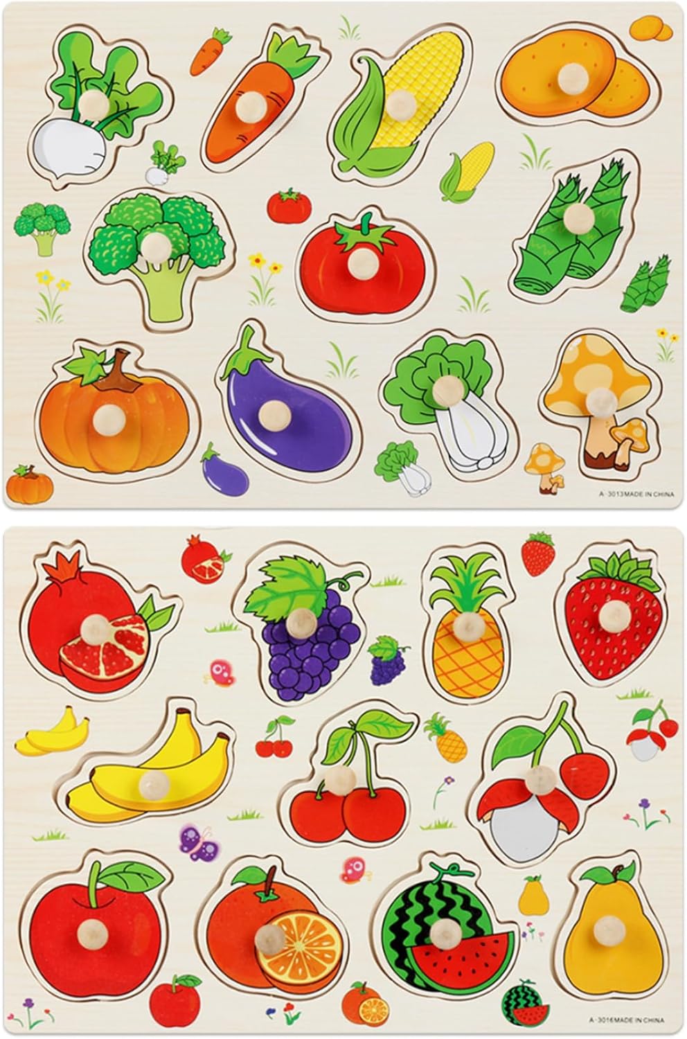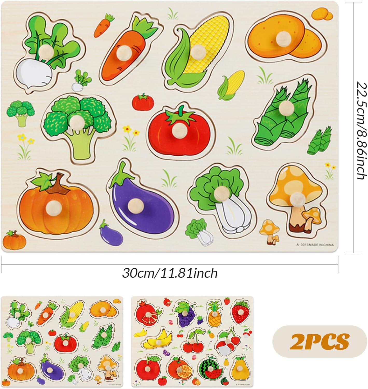 Temi colorati di frutta e verdura: con vivaci illustrazioni di frutta e verdura, questi puzzle sono progettati per attirare l'attenzione dei bambini mentre insegnano loro cibi sani..I disegni colorati rendono l'apprendimento della nutrizione divertente e interattivo! Supporta lo sviluppo delle capacità motorie: questi puzzle sono eccellenti per sviluppare capacità motorie, coordinazione occhio-mano e consapevolezza spaziale..Maneggiando i picchetti, i bambini migliorano la loro destrezza divertendosi a risolvere ogni enigma. Design accattivante ispirato a Montessori: questi puzzle con pioli di legno sono realizzati con un approccio Montessori, promuovendo l'apprendimento pratico e le capacità di pensiero critico..Ogni puzzle incoraggia i bambini a esplorare e abbinare le forme, migliorando il loro sviluppo cognitivo attraverso il gioco. Set da 2 per un gioco versatile: questo set include due puzzle, consentendo varie combinazioni e giochi di abbinamento..La versatilità promuove il gioco cooperativo e l'interazione sociale, rendendolo perfetto per appuntamenti di gioco o serate di gioco in famiglia. Materiali affidabili e sicuri: realizzati in legno, questi puzzle con picchetti sono costruiti per resistere ai rigori del gioco..Il design robusto e i bordi lisci garantiscono la sicurezza dei bambini dai 3 ai 7 anni, rendendoli ideali per l'uso quotidiano.