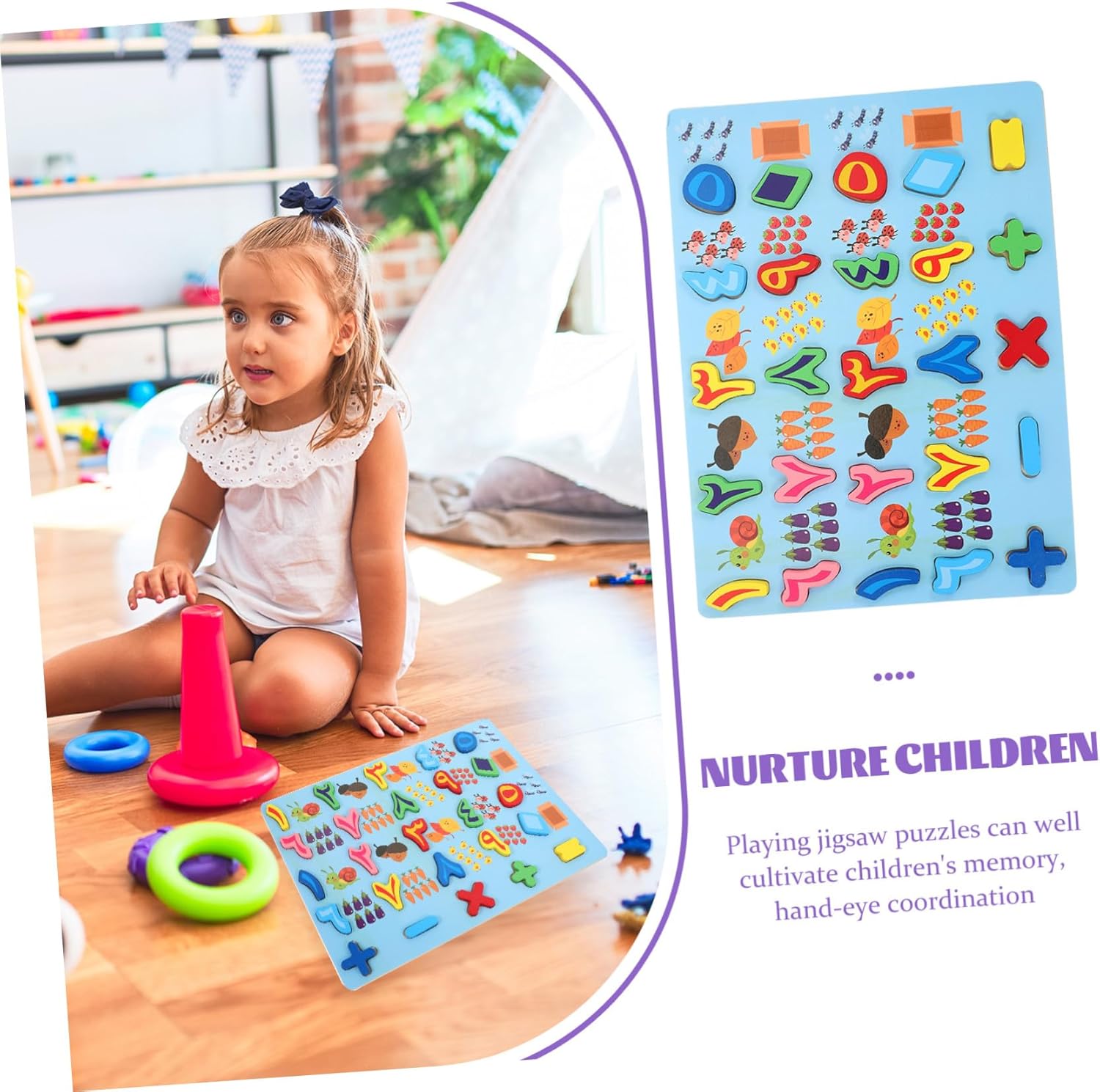 È uno strumento ideale per insegnare e migliorare il pensiero logico e le capacità di osservazione a casa, all'asilo e a scuola. Secondo il ritmo giusto, impara l'abbinamento cognitivo, allena il pensiero logico, migliora la capacità di osservazione e discriminazione. Progettato con grandi blocchi di legno, ogni pezzo del puzzle è facile da raggiungere per le piccole mani dei bambini. Questo puzzle stimola l'immaginazione e il pensiero dei bambini e sviluppa le capacità cognitive di base e la coordinazione occhio-mano. Introduci tuo figlio al mondo arabo con il puzzle con numeri arabi per la prima educazione. I piccoli pezzi del puzzle sono perfetti da afferrare e afferrare dalle mani dei più piccoli