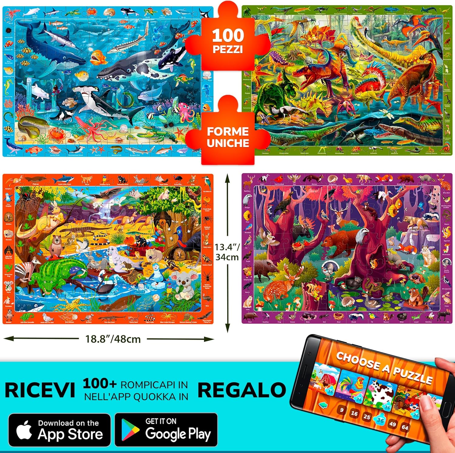 PUZZLE DI MAZE OSSERVAZIONALI: con parole e immagini sulla cornice del puzzle questo set di 3 puzzle da pavimento per 4 anni sarà una grande attività di apprendimento per bambini dai 4 ai 5 anni; Gioca alla ricerca e trova gioco con il tuo bambino; Puzzle durevole: i puzzle labirinti per bambini sono realizzati in cartone spesso di alta qualità con forme autoregolanti; le opere d'arte del puzzle finite sono stampate su scatole di stoccaggio per i bambini da seguire; Giocattoli educativi per bambini: se i tuoi bambini amano i classici puzzle del labirinto, adoreranno puzzle osservazionali unici da 100 pezzi; le immagini vivaci mostrano diversi animali selvatici, pesci oceanici e dinosauri; Tempo degli amici di famiglia: i puzzle di ricerca e trova appena sviluppati sono un'ottima idea per bambini, mamme, papà, nonni per trascorrere del tempo insieme; colori vivaci e personaggi amichevoli sorprenderanno ragazzi e ragazze alla festa di compleanno, Capodanno, Natale, ecc APPRENDERE I GIOCATTOLI: le attività giuste per i bambini di età compresa tra 5 e 8 anni aiutano a sviluppare capacità di risoluzione dei problemi, persistenza e pensiero logico; Inizia con i nostri puzzle per bambini dai 4 anni e passa a QUOKKA 100 puzzle labirinto per bambini;